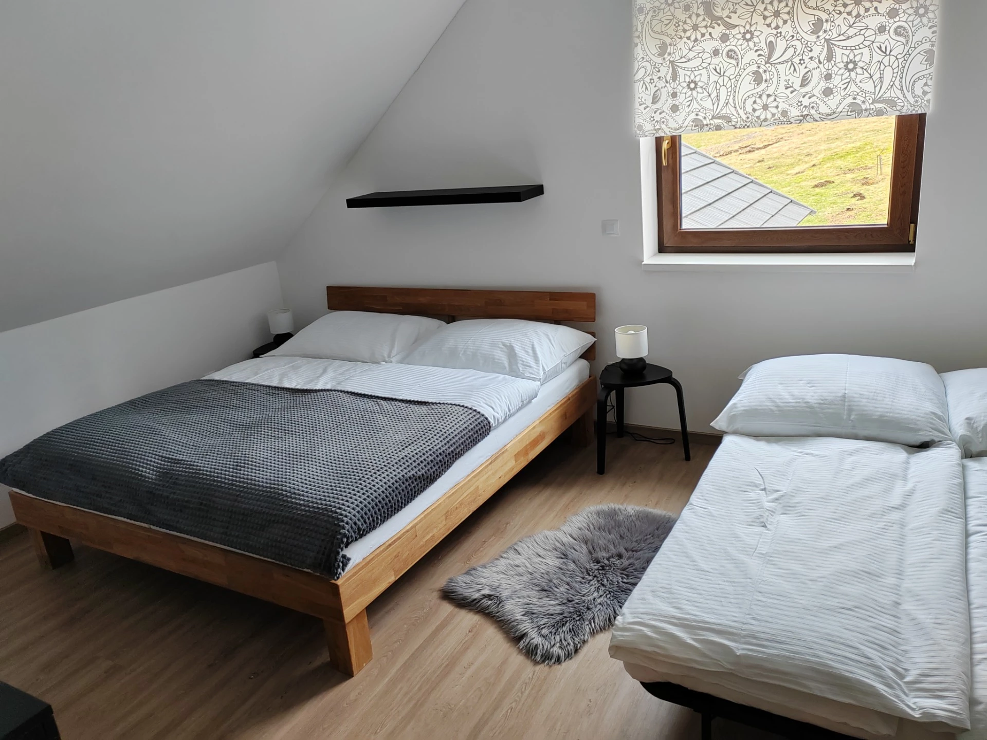- Vybavení: 1x manželská postel a 1x dvoulůžková přistýlka (pevný rošt a matrace).