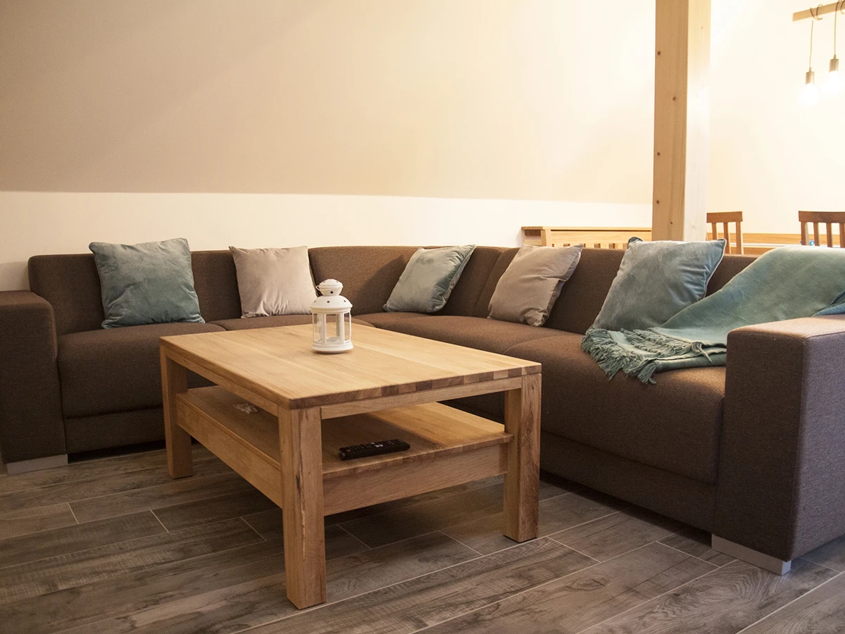 Velký jídelní stůl pro 10 osob, rohová sedací souprava, TV, Wi-Fi