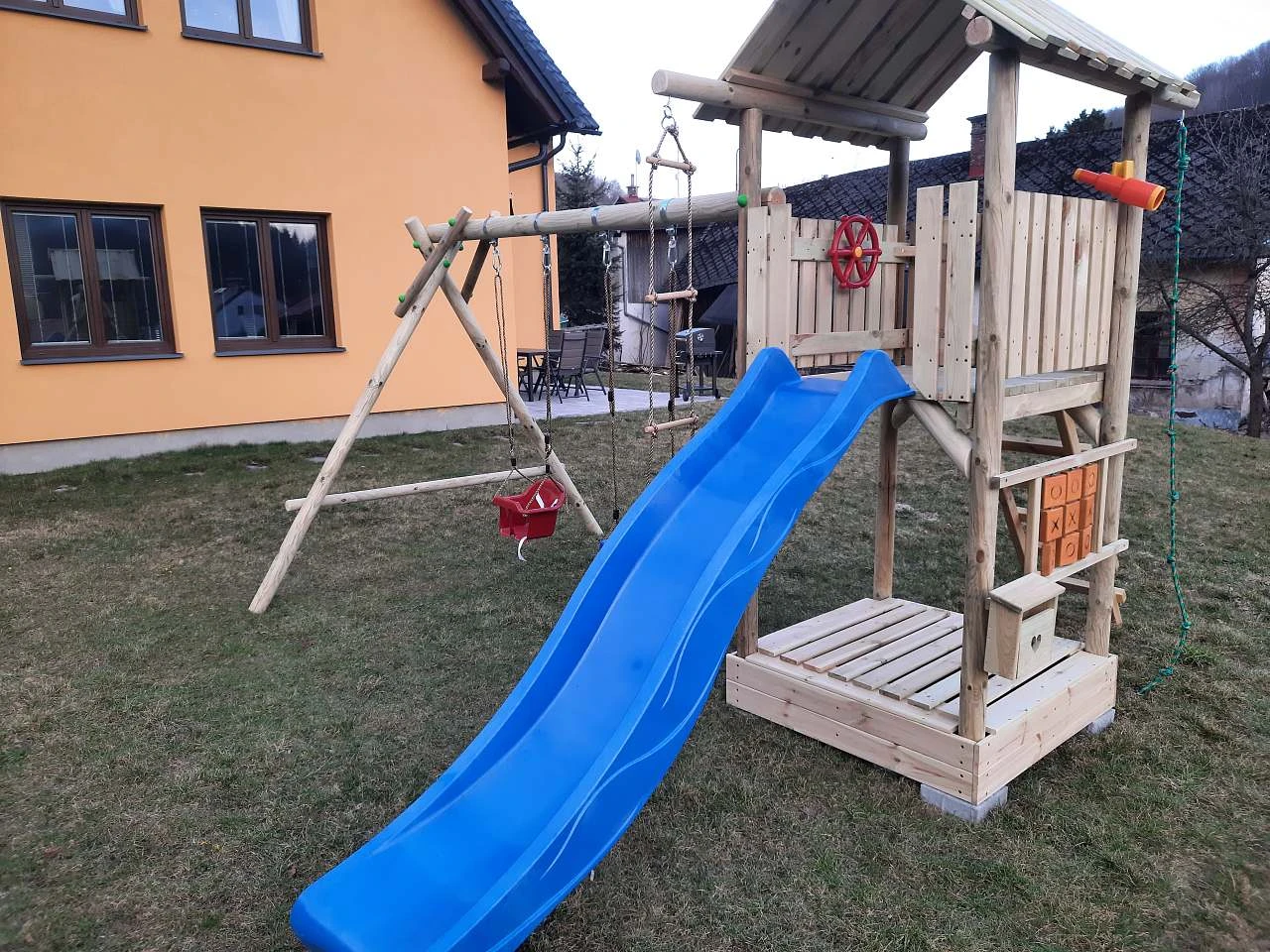 Chalupa je nově postavená a komfortně vybavená. K dispozici jsou 3 ložnice, každá s 3 plnohodnotnými lůžky (žádné přistýlky), 2 koupelny se sprchou, WC a pračkou, a velká společenská místnost s jídelním stolem pro 10 osob, TV, rohovou sedačkou a dětským koutkem. Kuchyně je plně vybavená: indukční deska, elektrická trouba, mikrovlnka, myčka, lednice a kompletní nádobí.