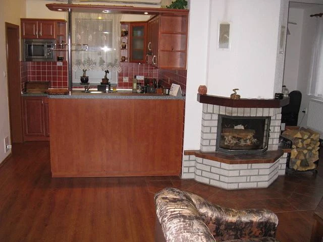 Vnitřní vybavení - kuchyně je plně vybavena varnou deskou a pečící troubou, varnou konvicí a mikrovlnou troubou, ledničkou s mražákem, nádobím na vaření +porcelánové stolní nádobí, v obýváku je LCD televizor a rádio.