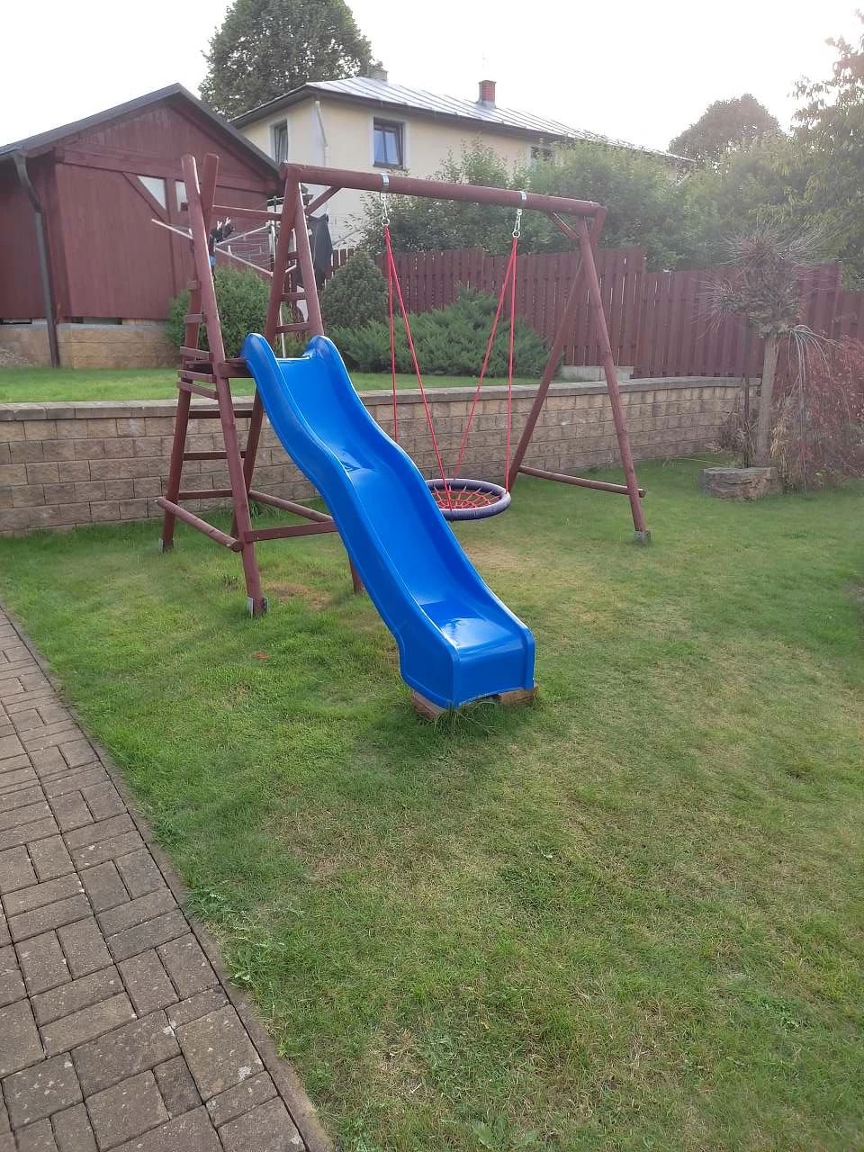 Náš rekreační dům Vám nabízí v přízemí kuchyň spojenou s obývacím pokojem a jídelnou, ložnici s manželskou postelí a jedním lůžkem, samostatné WC a koupelnu s vanou.