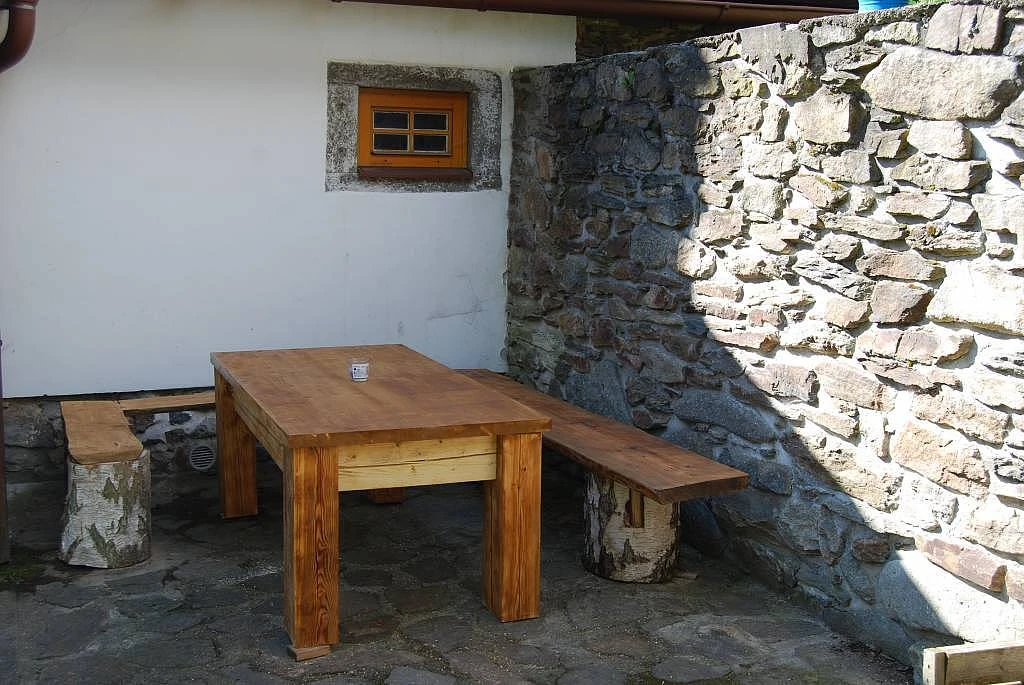 K chalupě náleží malá zahrádka s posezením, možností grilování, či venkovního stolování.