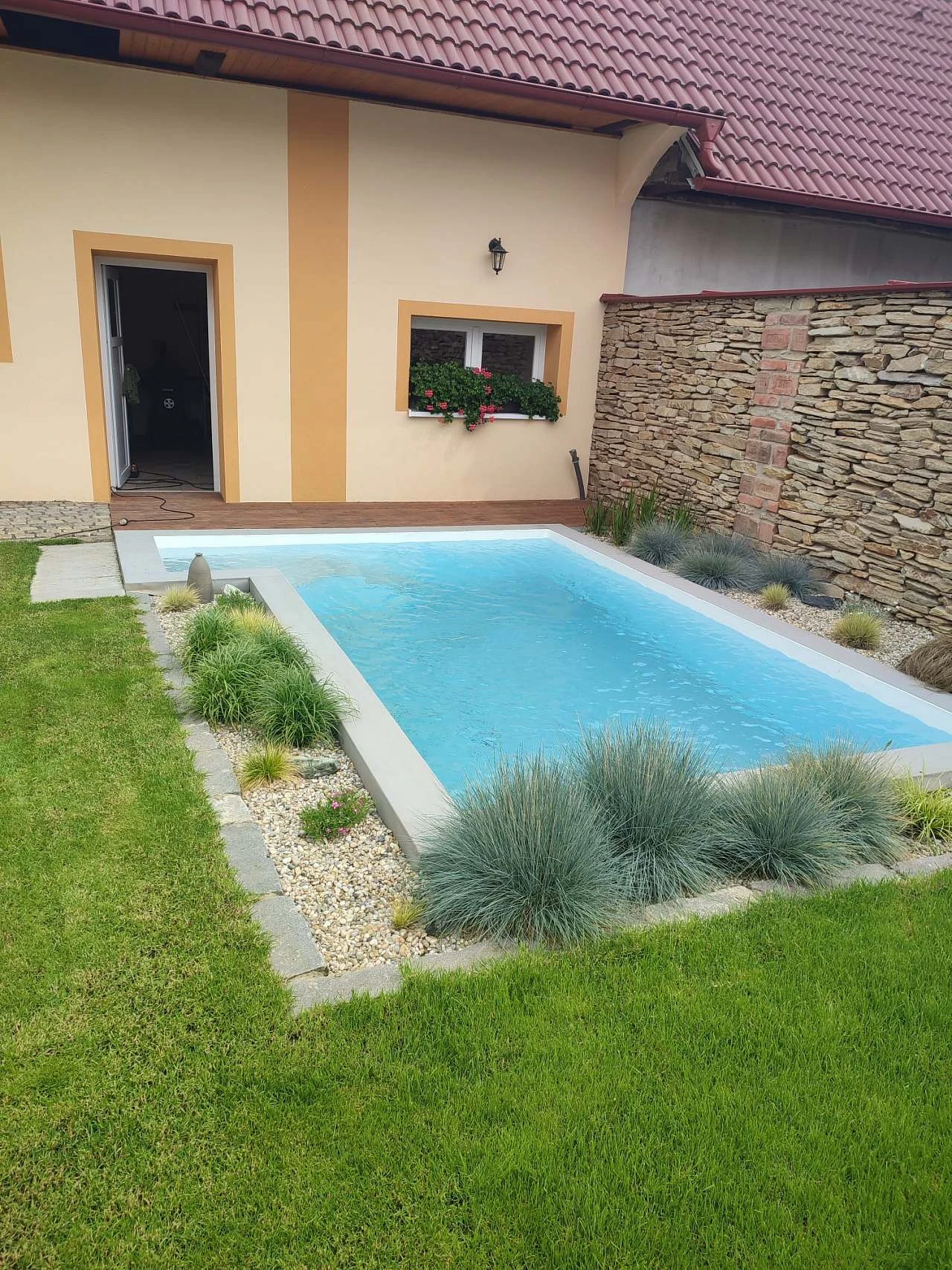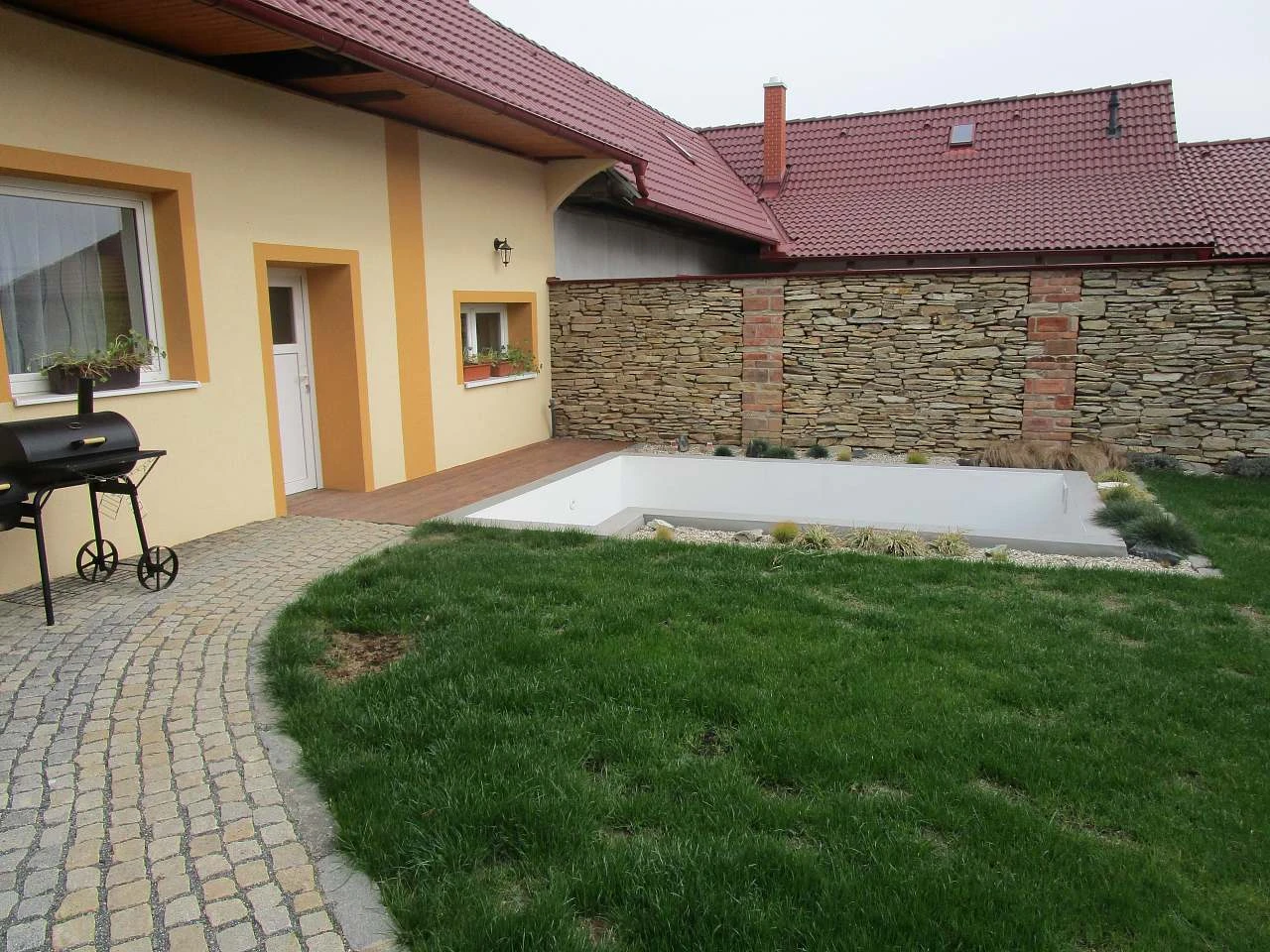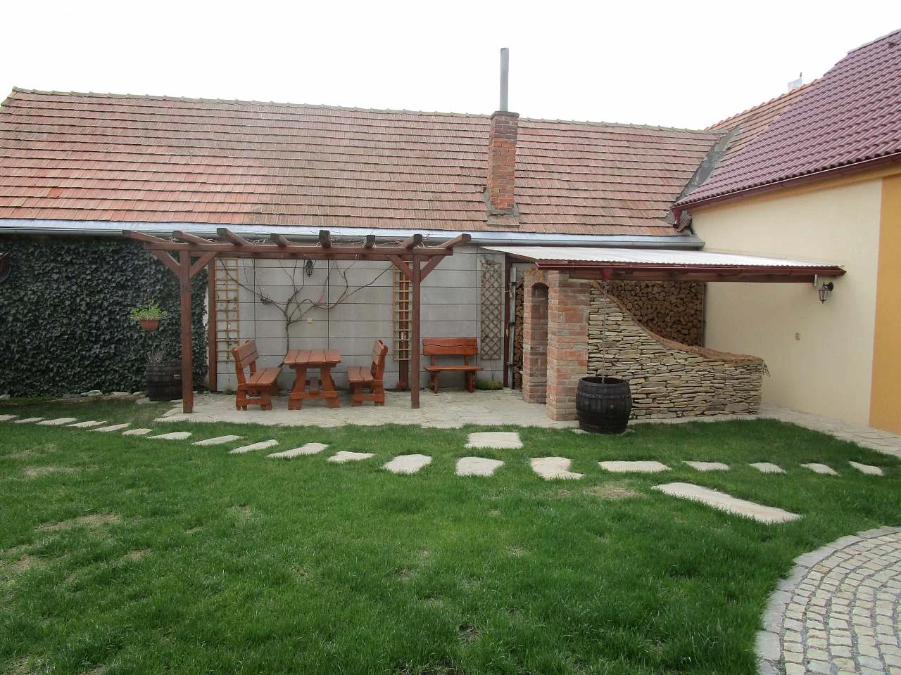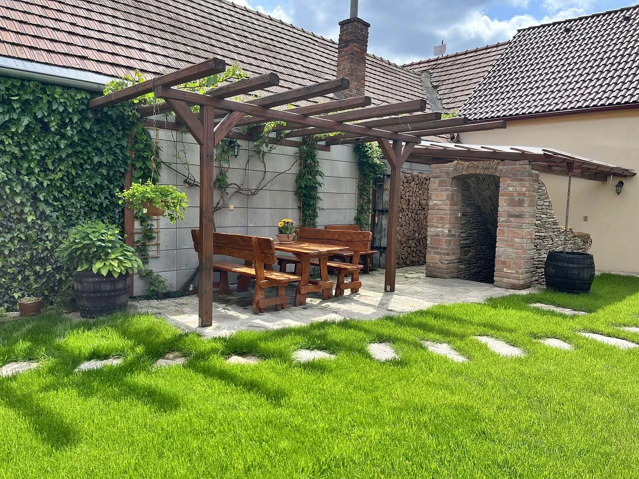 Dvorní trakt chalupy je ohraničený a zatravněný, a nabízí příjemné venkovní posezení. Zde si můžete získat krásné okamžiky s rodinou nebo přáteli. Součástí dvora je také bazén, který vám poskytne osvěžení a možnost relaxace. Pro milovníky vína je k dispozici vinný sklep s vinným archivem, kde si můžete vybrat vybrané lahůdky.