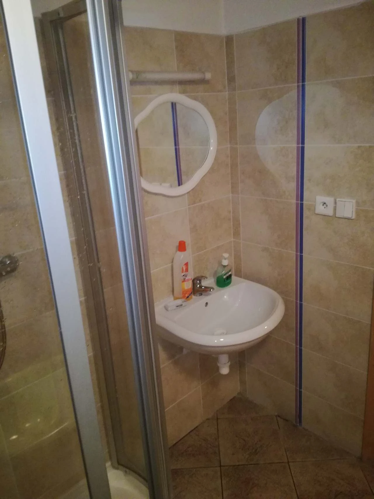 V přízemí je obytný prostor s posezením, televizí a kuchyňským koutem. Součástí každého apartmánu je koupelna se sprchovým koutem, umyvadlem a toaletou.