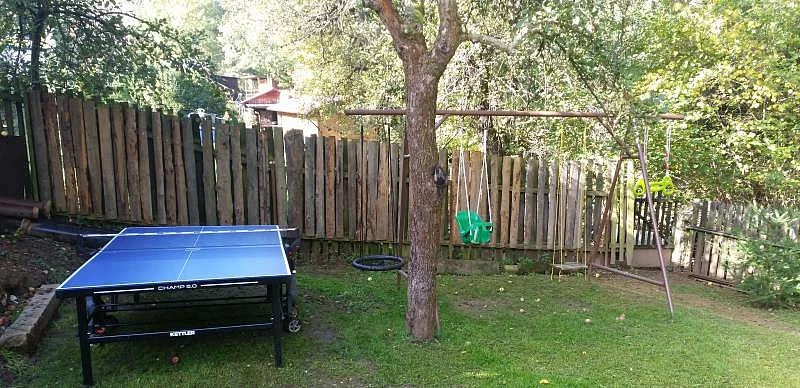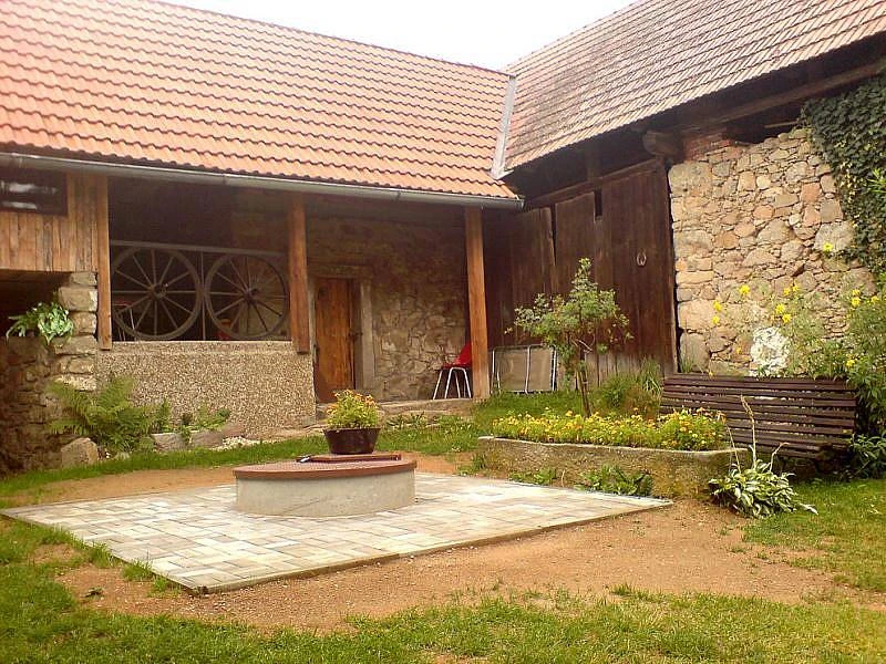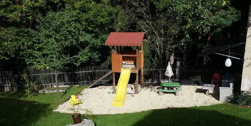 Kromě uzavřeného dvorku je k dispozici velký pozemek, kde se nachází venkovní zděný krb s posezením nebo ohniště a na dohled též pro menší děti pískoviště, sezení a klouzačka.