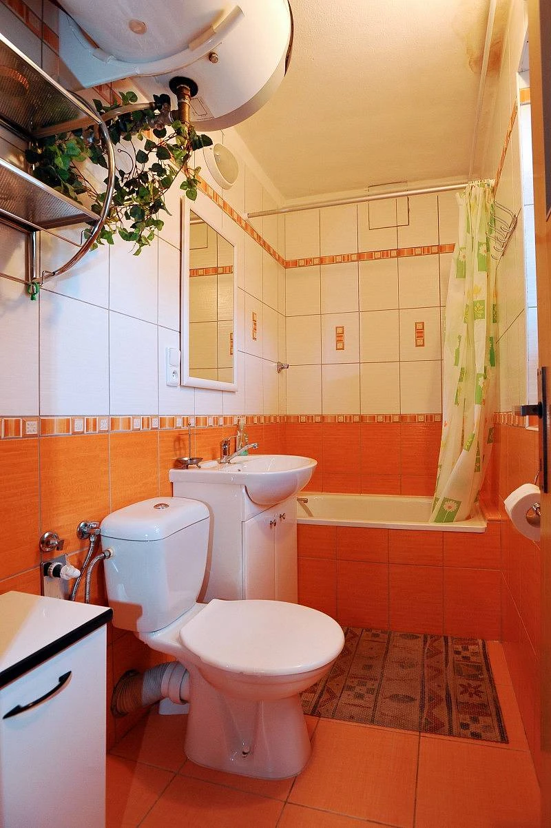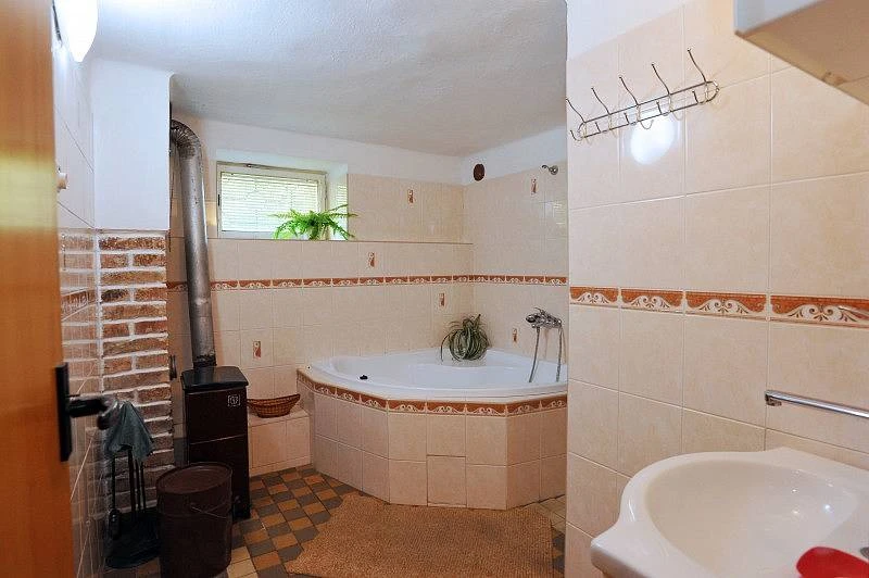 Ve starší jednopodlažní chalupě je jedna samostatná koupelna s rohovou vanou a WC a v novější dvoupodlažní chalupě jsou dvě koupelny s WC.