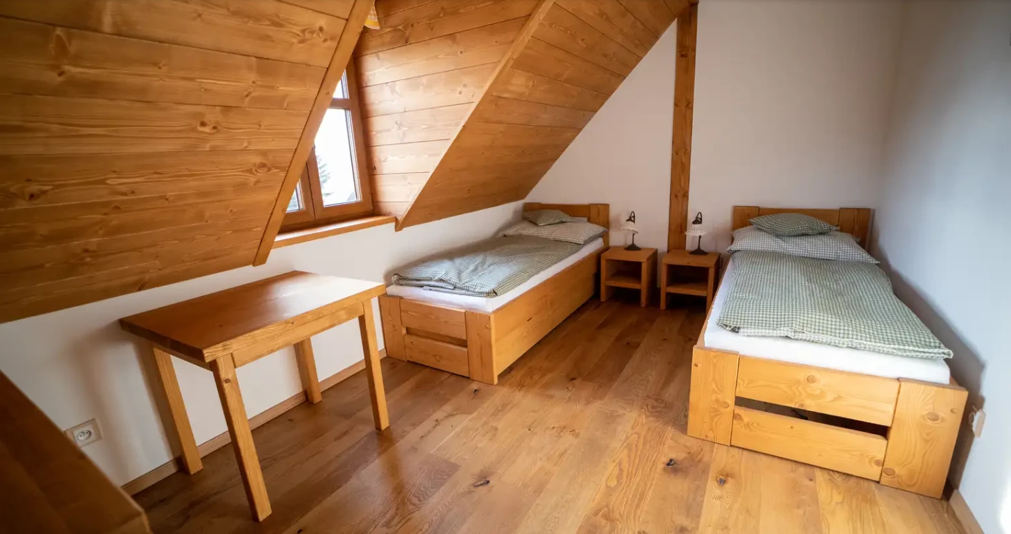 Chalupa Loveč poskytuje komfortní ubytování pro až 15 osob. K dispozici jsou 4 ložnice, z nichž každá má vlastní koupelnu se sprchovým koutem a toaletou.