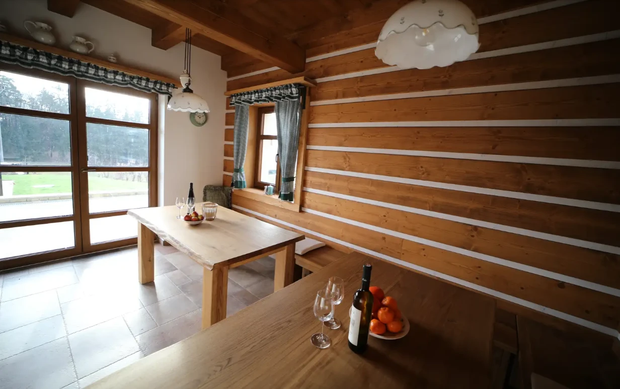 Společné prostory zahrnují prostorný obývací pokoj s kachlovými kamny, pohodlným posezením, TV a jídelním stolem. Součástí objektu je plně vybavená kuchyň s indukční varnou deskou, elektrickou troubou, mikrovlnnou troubou, myčkou nádobí, varnou konvicí a lednicí s mrazákem. V celém objektu je dostupné Wi-Fi připojení.