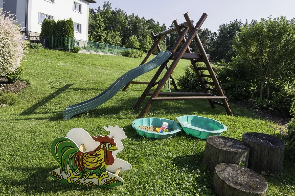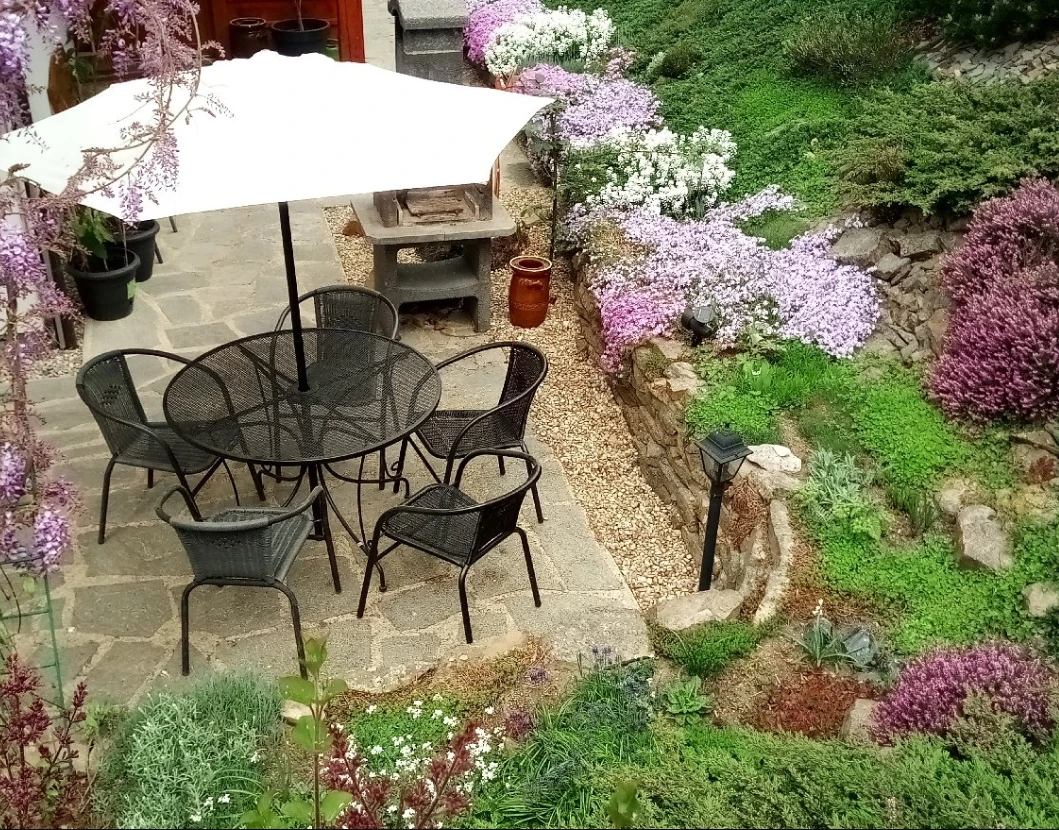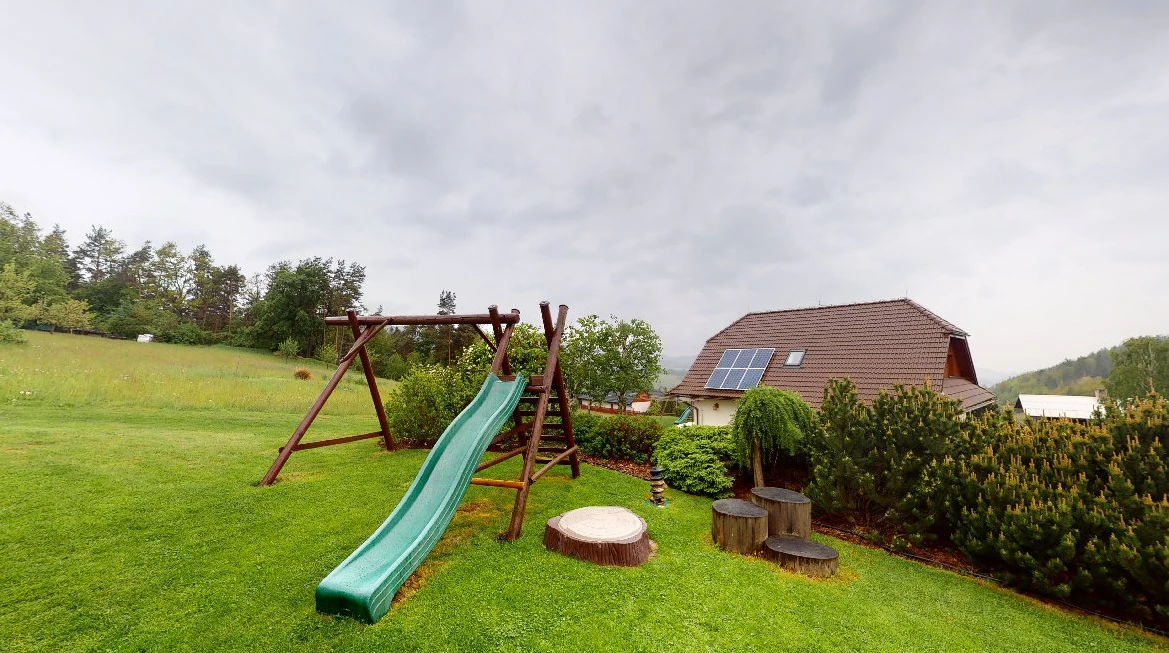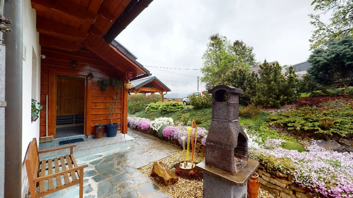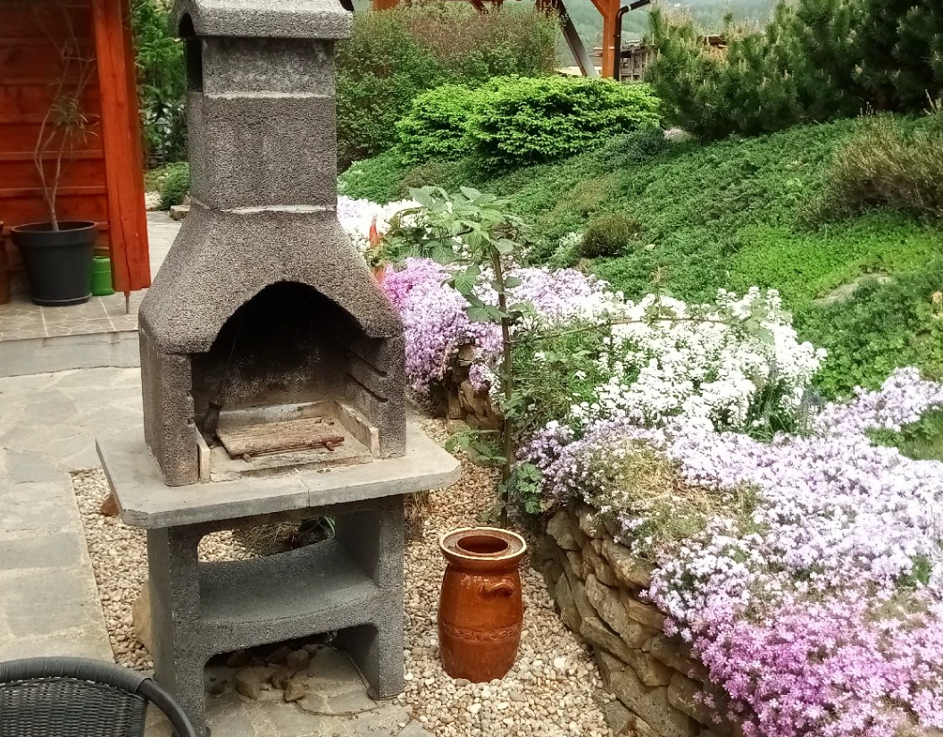 Z obývacího pokoje je přímý vstup na terasu s venkovním posezením a krbem s grilovacím roštem. Pro děti je připraveno pískoviště, houpačka, skluzavka a hračky na venkovní aktivity. Parkování je možné přímo u objektu. Hosté mají k dispozici samostatnou místnost pro úschovu kol a lyží. Chalupa je vhodná pro rodiny s dětmi i skupiny přátel hledající komfortní zázemí v blízkosti turistických a sportovních aktivit v oblasti Beskyd.