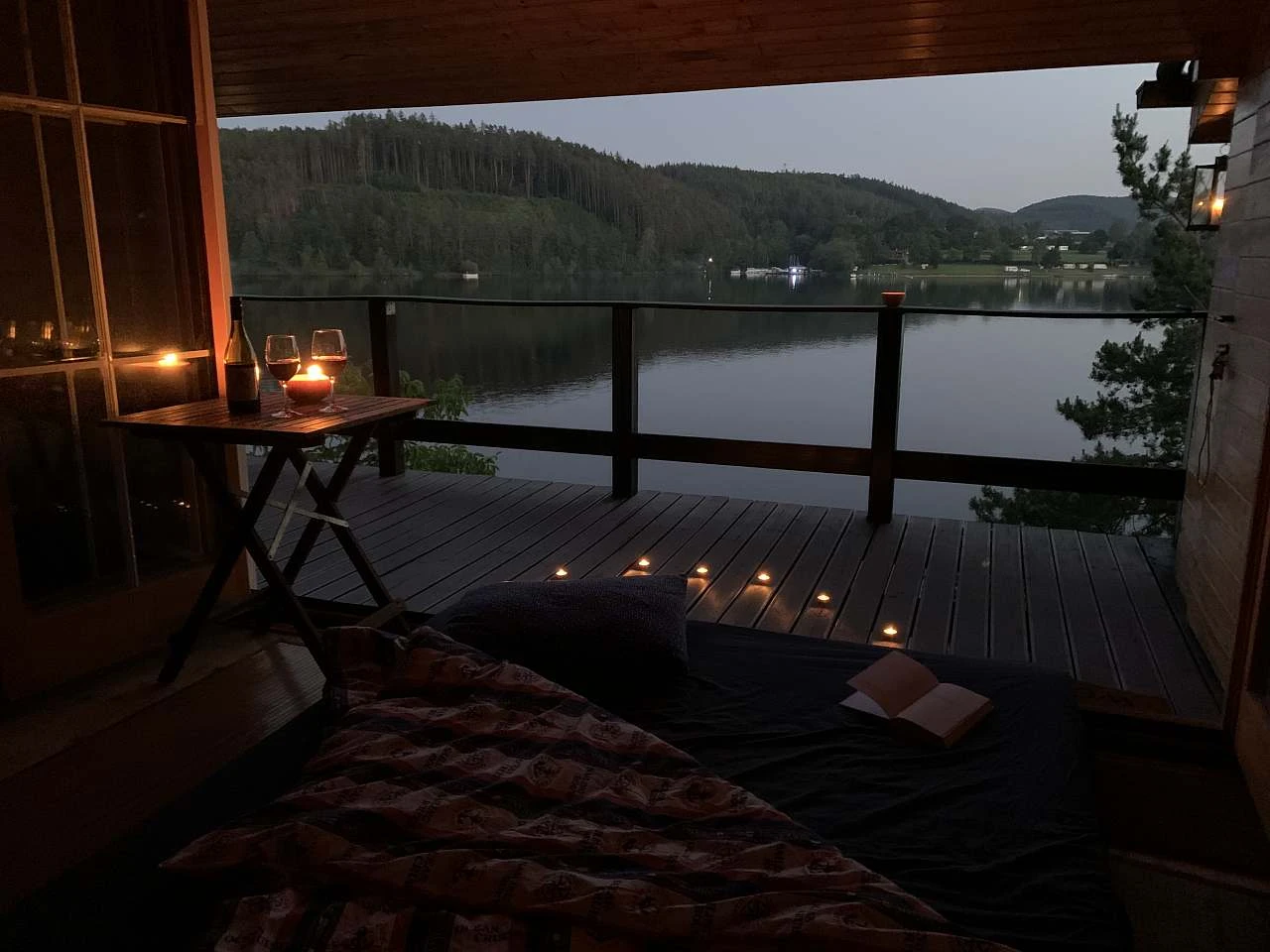 Chalupa disponuje 3 místnostmi, sluneční terasou, venkovní kuchyní a soukromým molem. V hlavní místnosti se nachází krb, vybavená kuchyně, jídelní stůl, pohovka a velké francouzské okno se vstupem na terasu. S oknem manipulujte s citem! Při přechodu na terasu v žádném případě nestoupejte na okenní kolejnici! První manipulaci Vám ukážeme při předání. Obecně platí, že když Vám něco nepůjde, než použít sílu, raději zavolejte. Nyní si projdeme veškeré vybavení v místnostech: