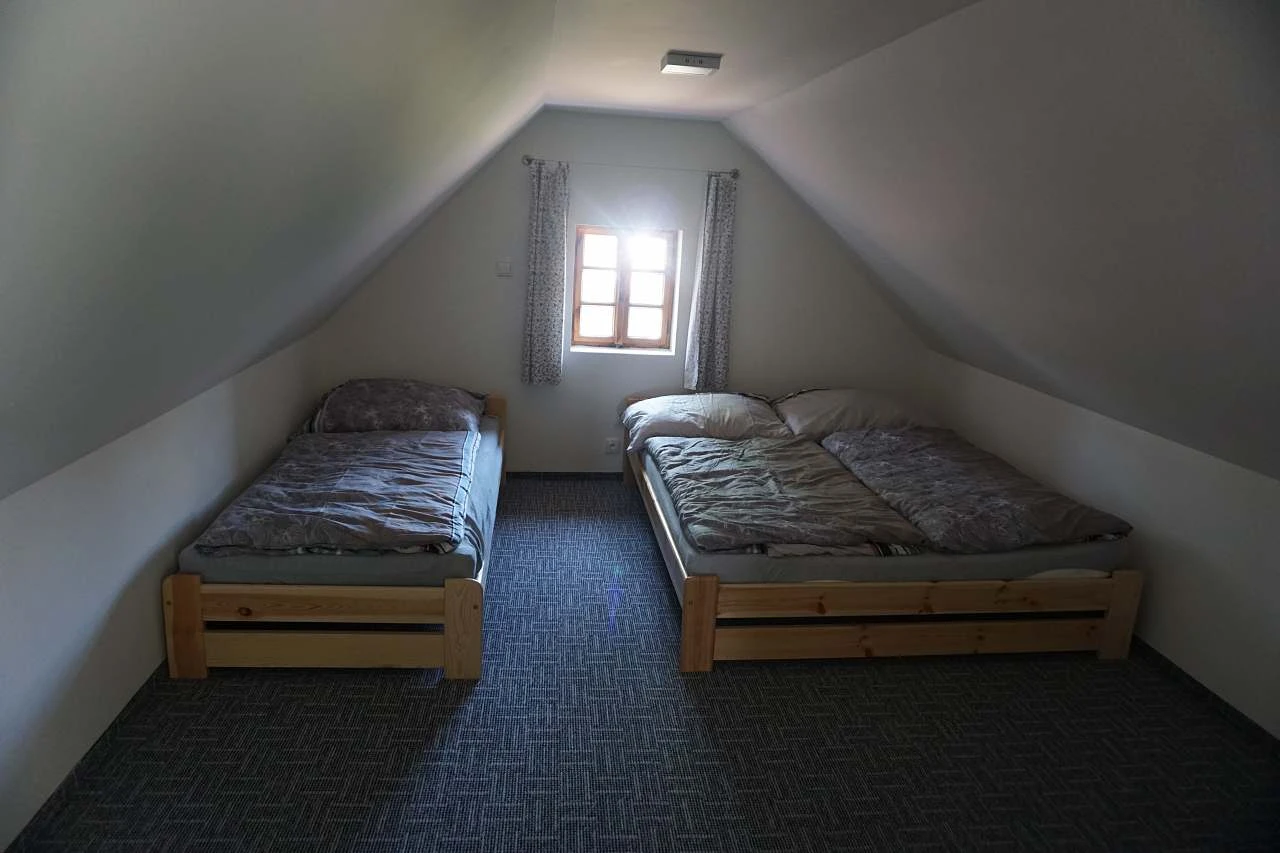 Chalupa k pronajmutí poskytuje ubytování pro 4 až 10 osob ve 3 ložnicích.
