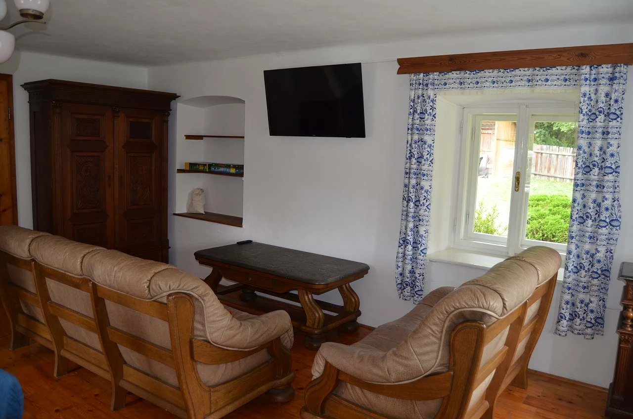 nabízí 8 lůžek ve 3 ložnicích s případnou možností až 4 přistýlek. V obývacím pokoji je televize a krb, kde si můžete vychutnávat pohodu. Kuchyň je vybavená elektrickým sporákem, mikrovlnnou troubou, kávovarem a základním nádobím. Koupelna je včetně sprchového koutu, s pračkou a WC, samozřejmostí je teplá voda. V chodbě je situována lednice s mrazákem, Vytápění je zabezpečeno el. přímotopy a kamny na dřevo.