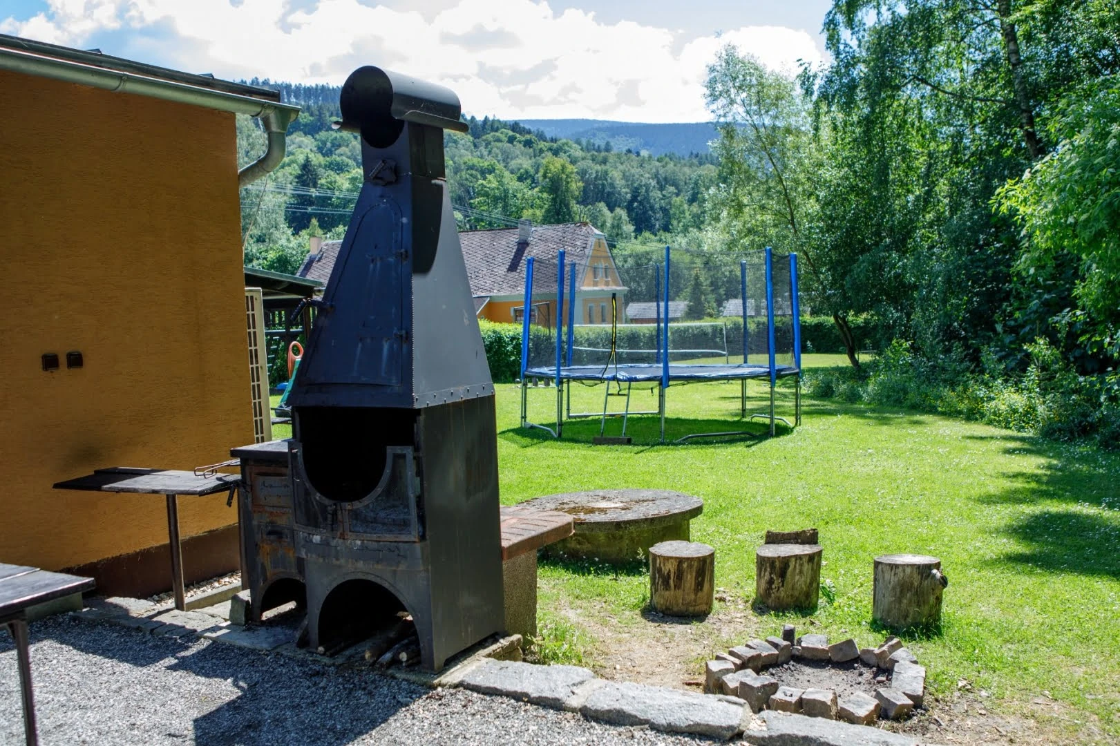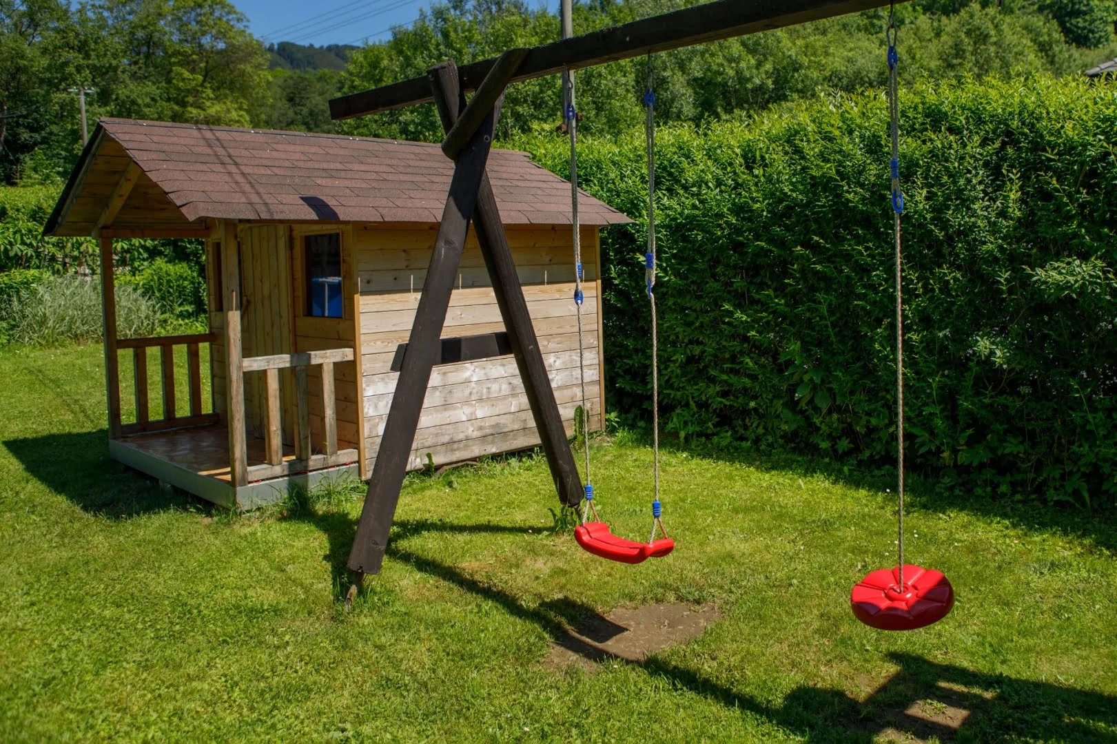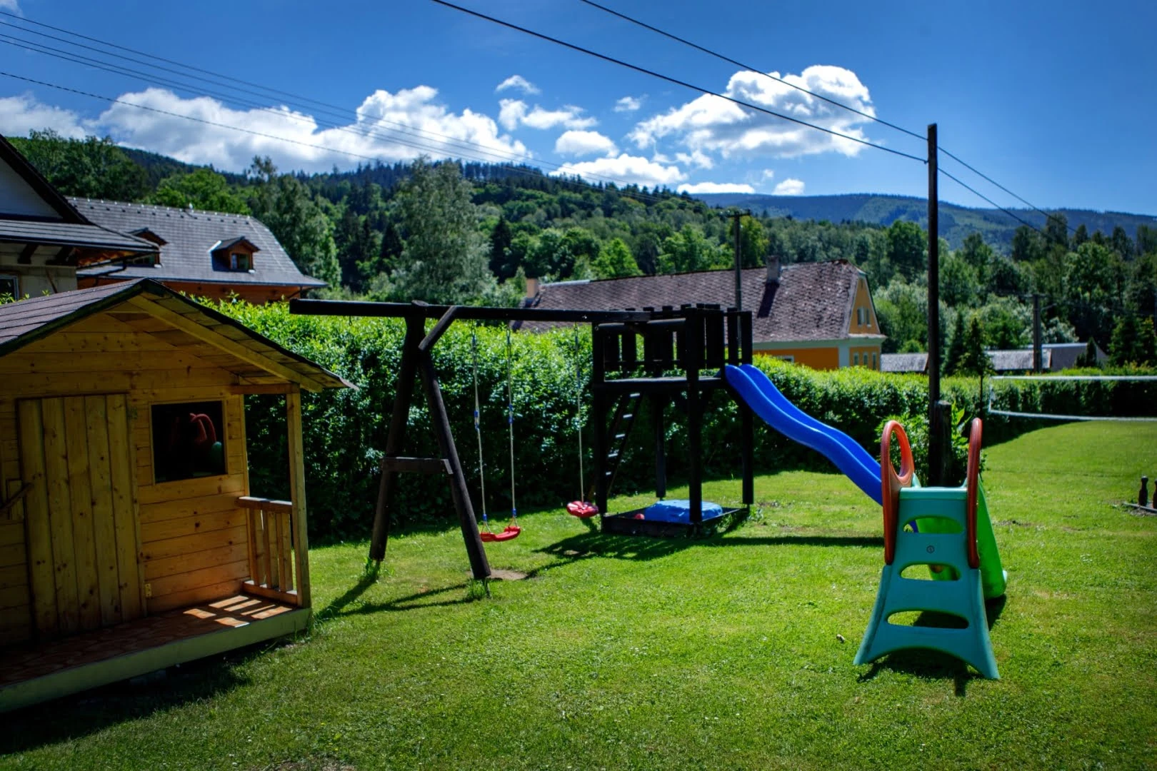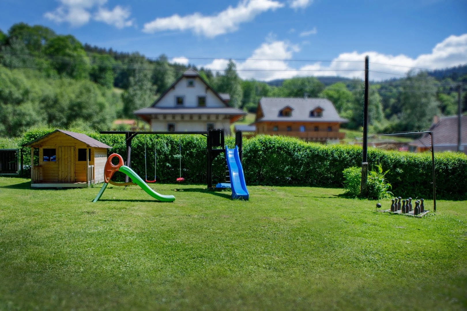 Vaši dovolenou zpříjemní oplocená zahrada s s dětským hřištěm, grilem a bazénem. Děti se vyřádí na skluzavce, houpačce, v dětském domečku, pískovišti a trampolíně. Společně si venku můžete zahrát kuželky.