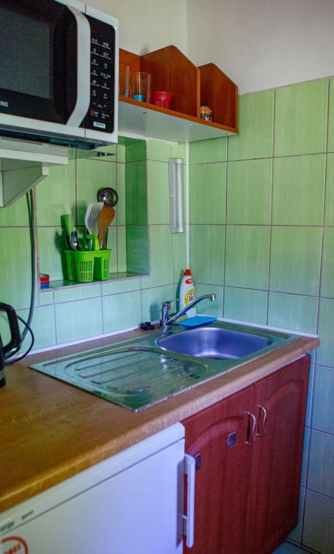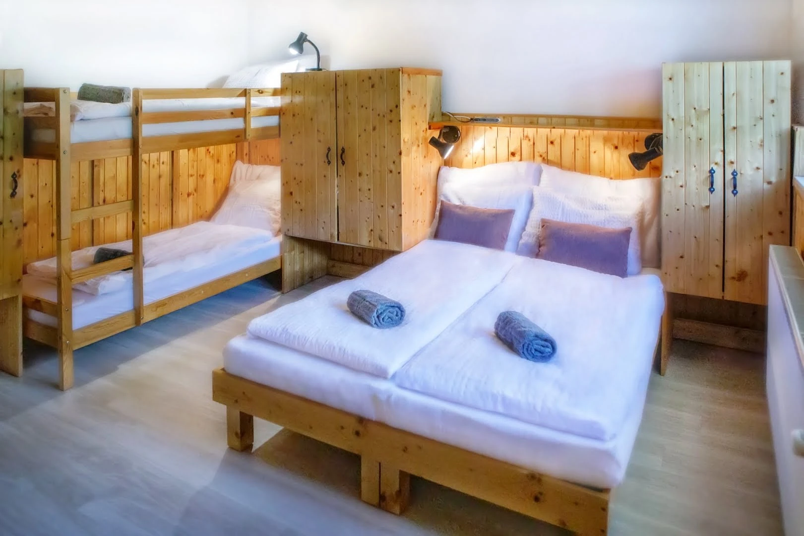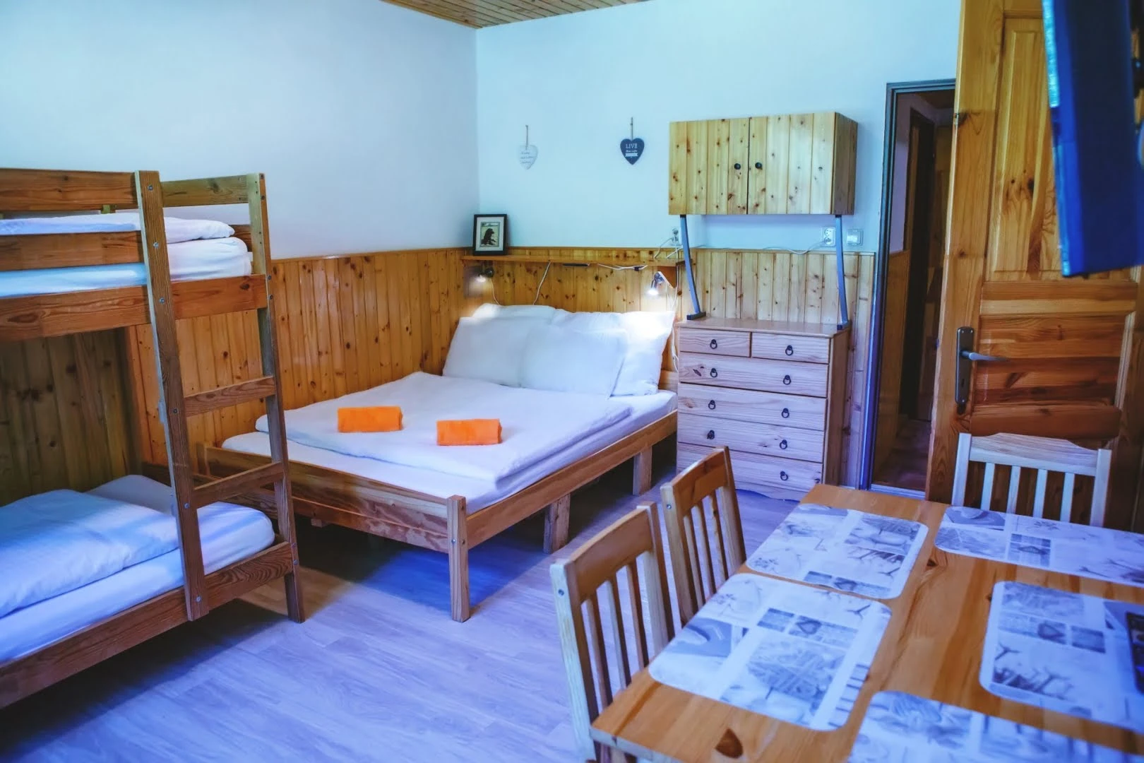 - Apartmán - 1x dvou postel, 1 x patrová postel, 1x WC, 1x sprchový kout, vlastní el. bojler, vybavená kuchyně. Ideální pro rodinku s nejmenšími dětmi, která potřebuje své soukromí.