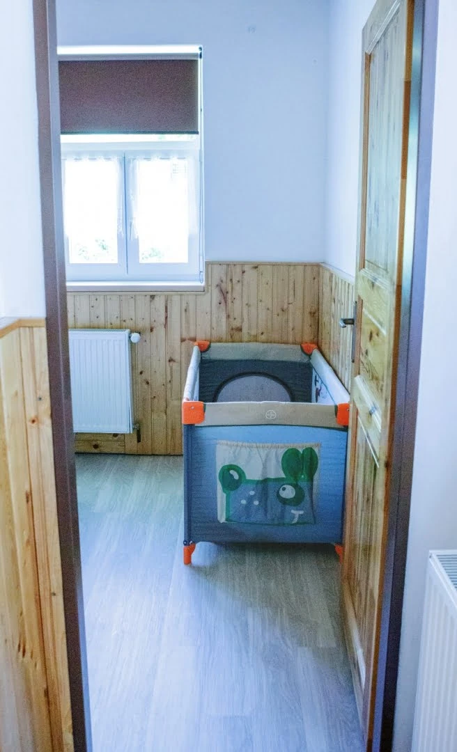 Pro nejmenší je připravena cestovní postýlka, nočník, jídelní židlička a spousta hraček.