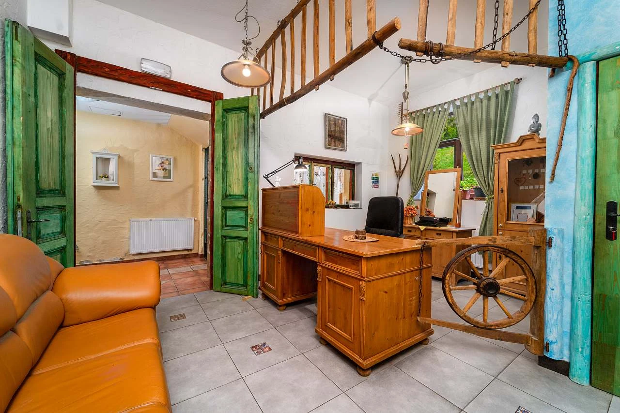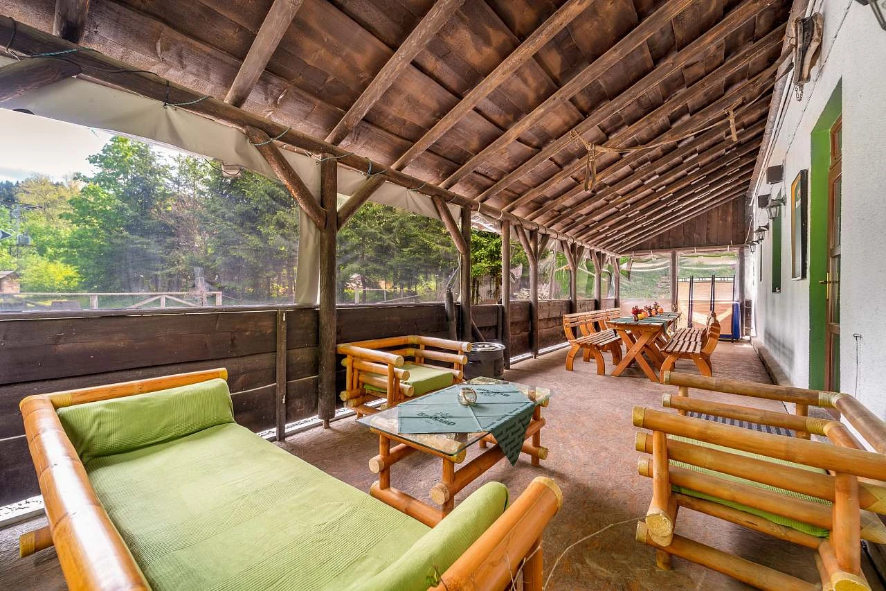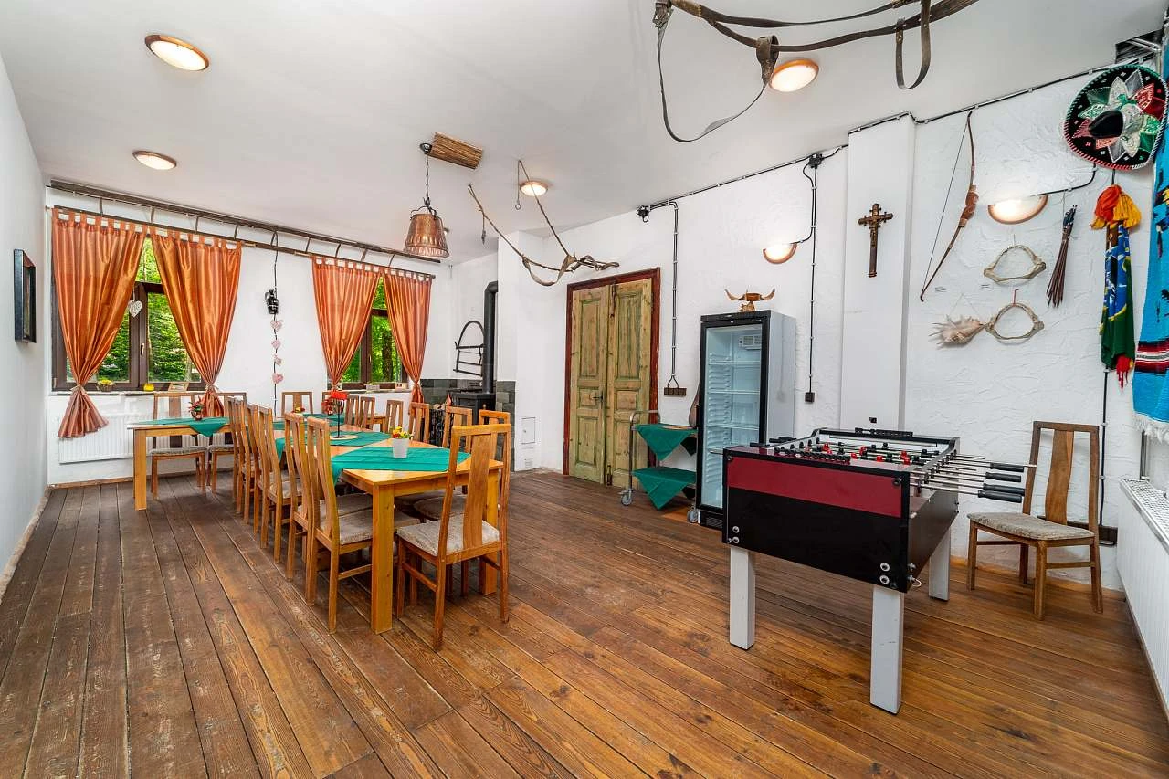 Hosté mají k dispozici dvě společenské místnosti, pět samostatných sociálních zařízení a krytou terasu s grilem ideální pro venkovní posezení. V objektu je také soukromé wellness s vířivkou, saunou a ochlazovací bečkou,vířivkou v jeskyni se slanou vodou.Tyto doplňkové služby doporučujeme rezervovat předem. K dispozici je grilovací domek a atraktivní zahrada s ohništěm a dětskými atrakcemi.
