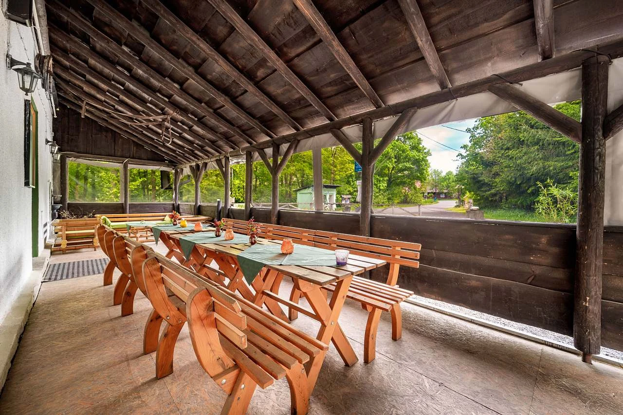 Vlastní stravování. Pro přípravu jídel slouží našim hostům profikuchyně s prostornou jídelnou, na kterou navazuje krytá terasa. Vše je vybaveno a zařízeno pro vlastní kulinářské zážitky. Naši hosté mohou využít k občerstvení vynikající pizzu v připravené peci formou samoobsluhy.