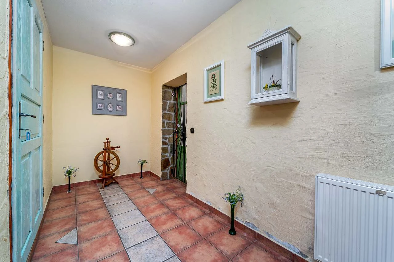 Vytápění i ohřev vody jsou zajištěny plynovým topením v kombinaci s krbovými kamny s výměníkem a elektrickými radiátory.