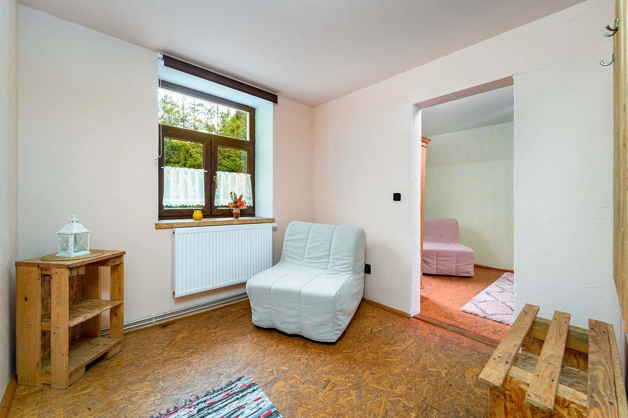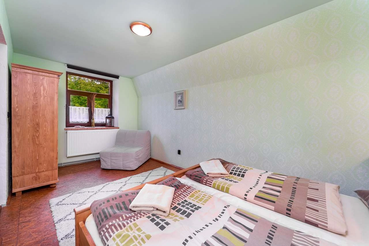 Chalupa k pronajmutí poskytuje ubytování pro 12 až 20 osob v 7 ložnicích.