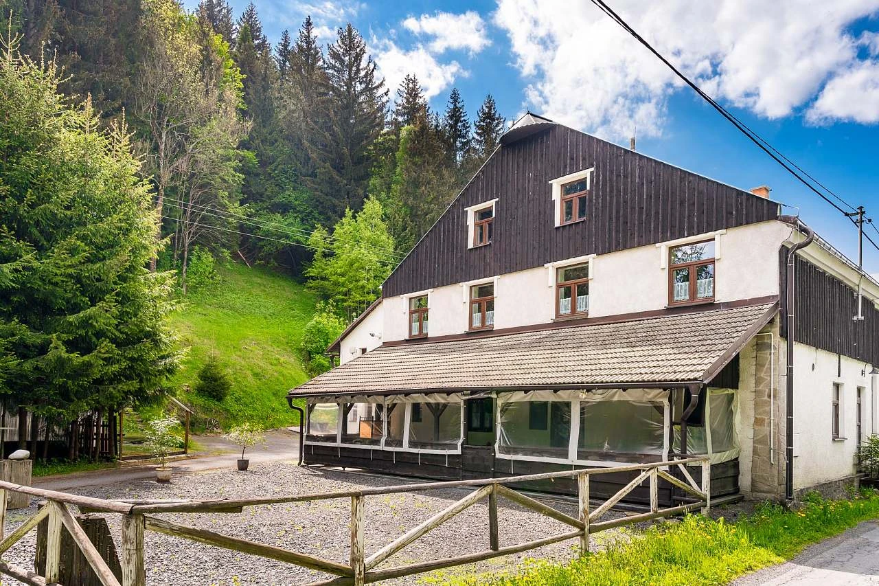 Chalupa Celnica - hostinec - nově po rekonstrukci.. je tvořena jako 5 samostatných apartmánových ložnic. Ložnice - 4lůžková 2X, ložnice 2lůžková 3X... společenská místnost 2x, společná plně vybavená kuchyně. Krytá venkovní terasa.