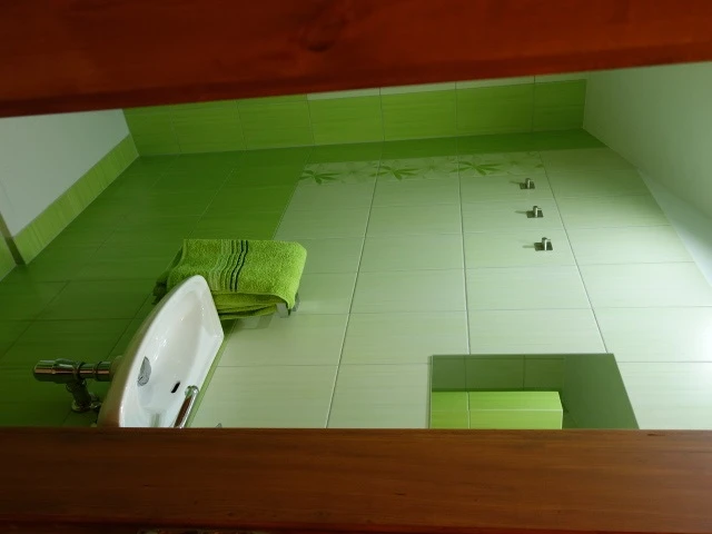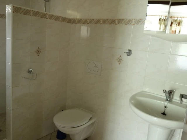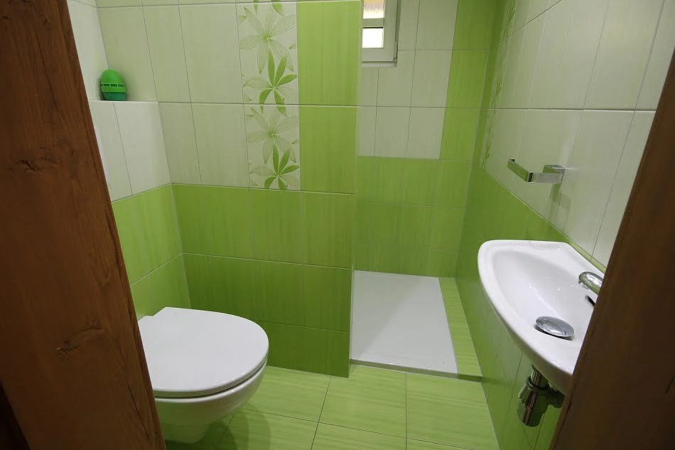 V přízemí 2 x sprchový kout s WC a umyvadlem, druhé samostatné WC s umyvadlem.