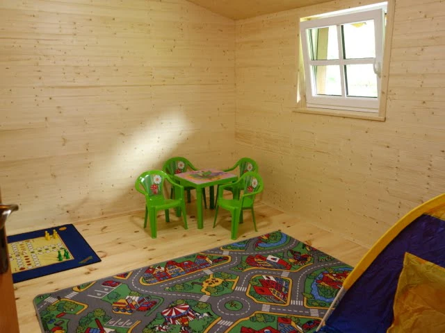 v dětském hracím pokoji rozkládací pohovka pro 2 osoby.