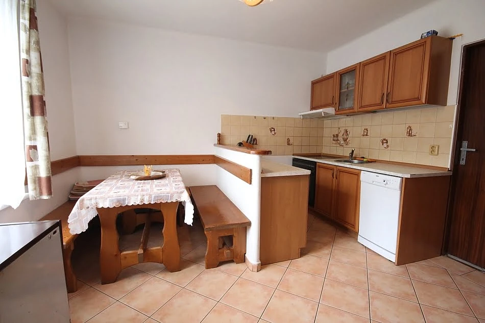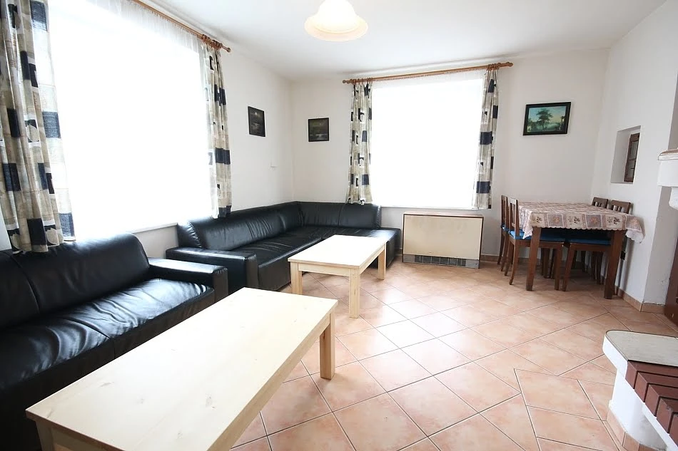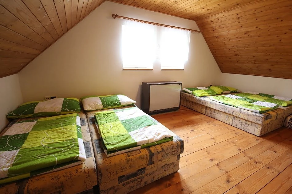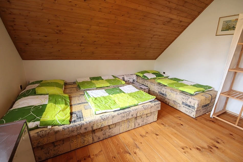Chalupa k pronájmu poskytuje ubytování pro 16 osob ve 3 ložnicích.