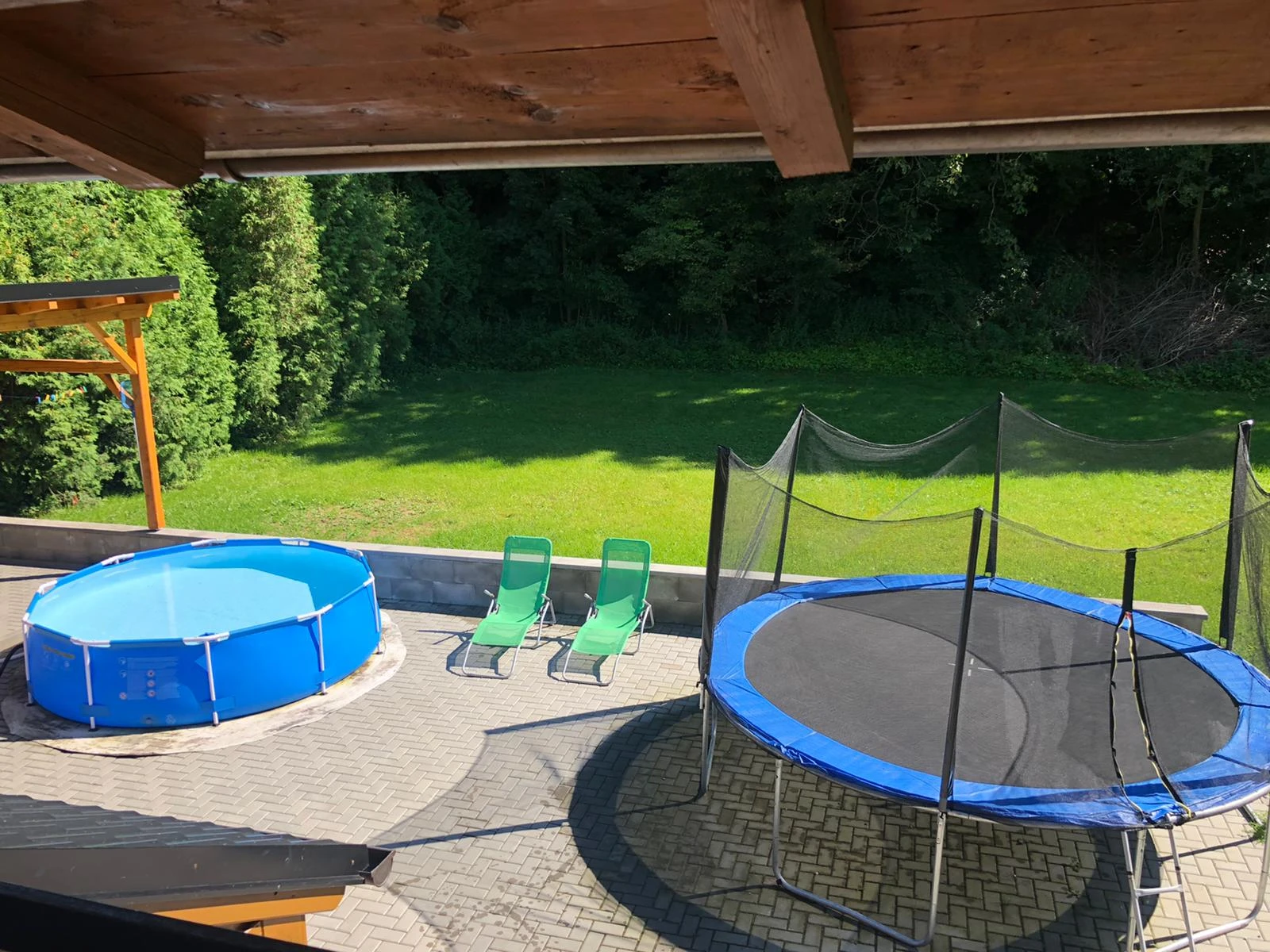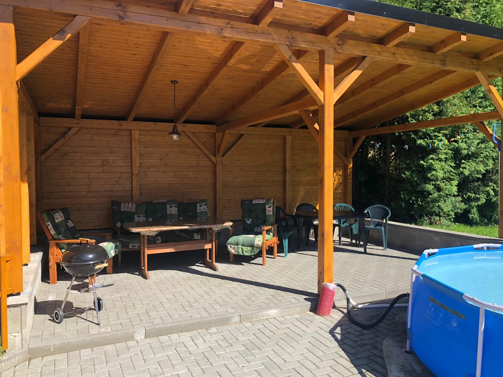 Vybavení zahrnuje kuchyni s elektrickým sporákem a sklokeramickou varnou deskou, horkovzdušnou troubu, myčku, kachlová kamna, ledničku s mrazákem a mikrovlnnou troubu. Společenská místnost je vybavena krbem, pohodlným posezením a televizí; jsou zde také 3 toalety a 2 sprchové kouty. Pro děti je připravena herna, a na zahradě najdete bazén s dětským koutkem, vybaveným houpačkami a trampolínou, který je k dispozici během letních měsíců, a velkou krytou terasu pro relaxaci.