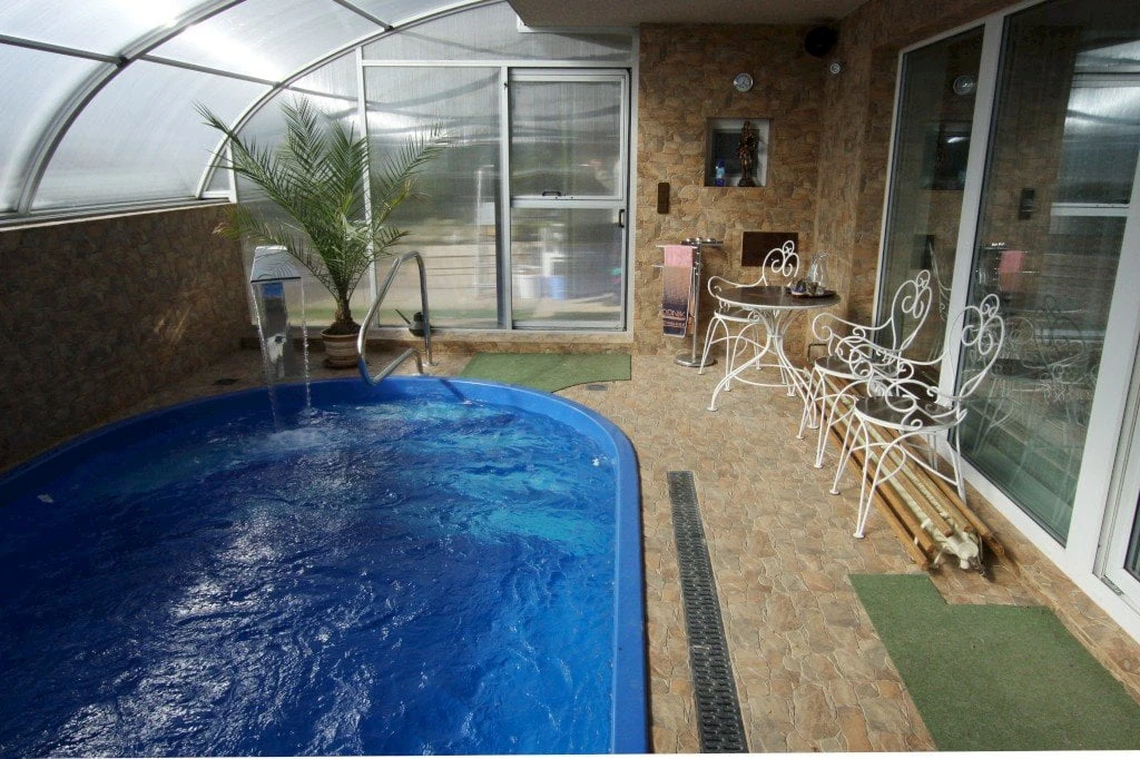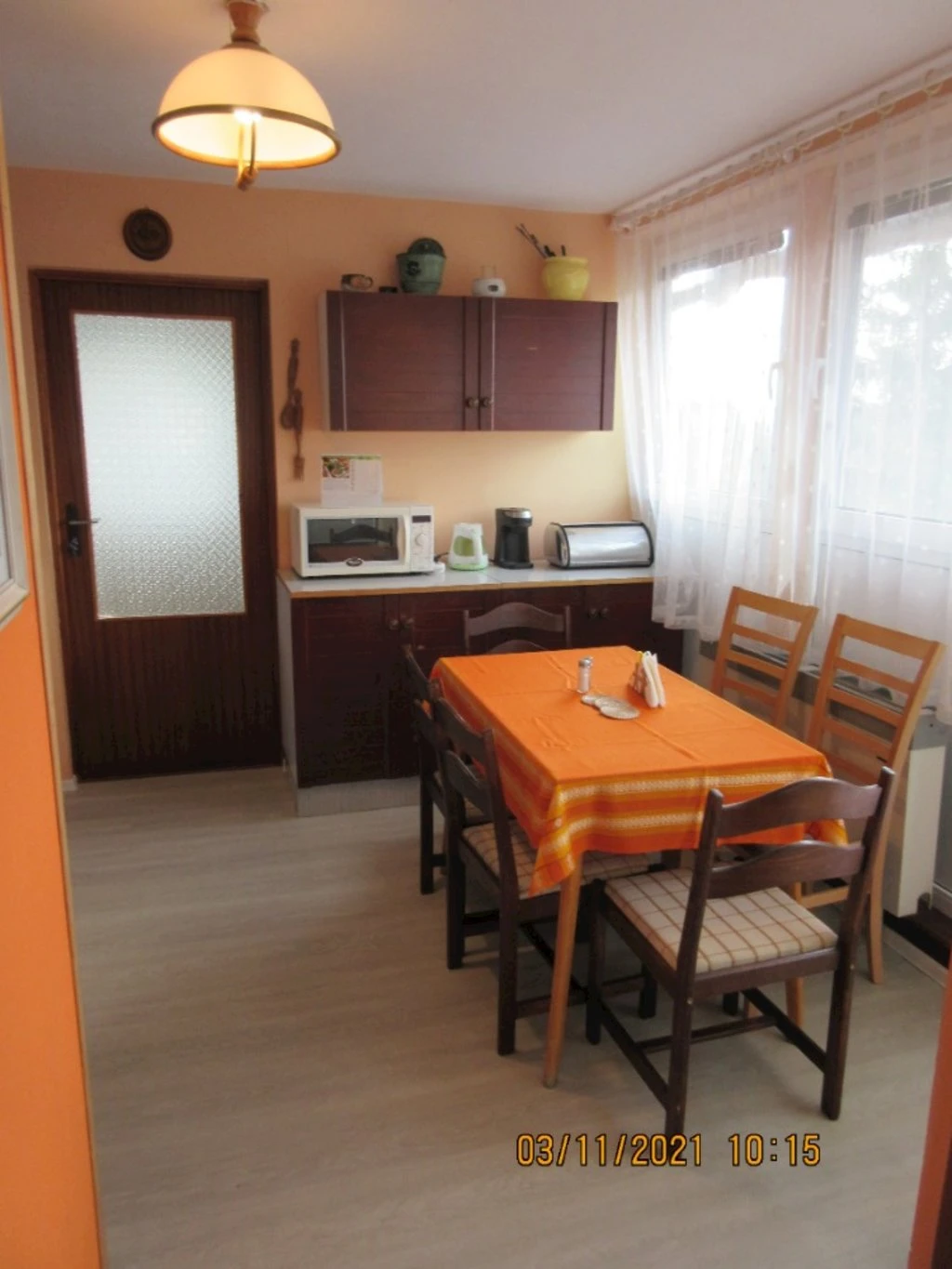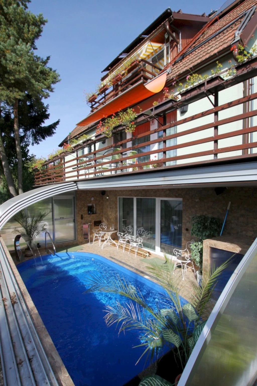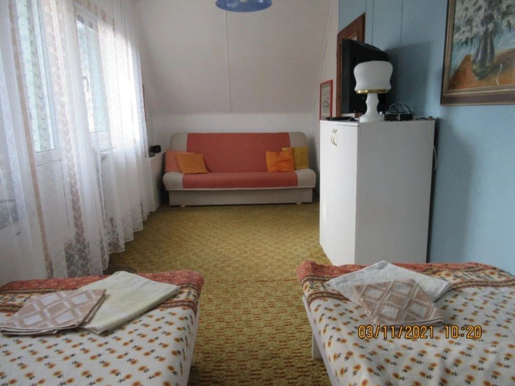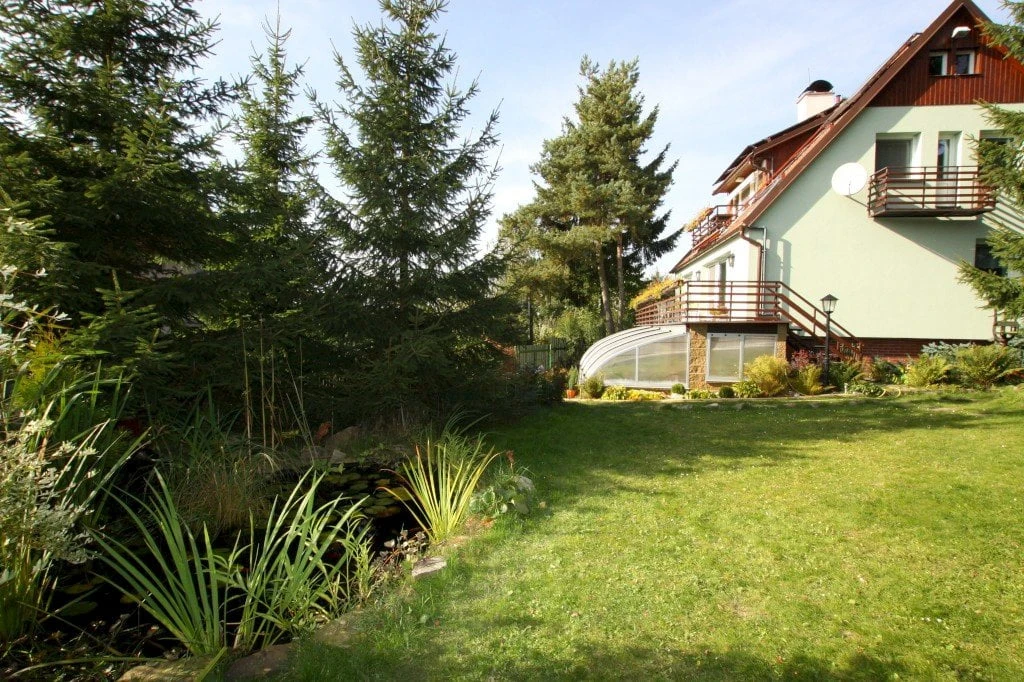 Apartmán je umístěn v podkroví rodinného domu, jehož přízemí příležitostně obývá majitel. Apartmán se skládá z obývací haly (2 lůžka, pohovka, LCD TV, skříň), kuchyně s jídelním koutem a balkonem, ze 2 ložnic a to se čtyřmi a s pěti lůžky (lůžka formou rozkládacího gauče, konferenční stolek, stůl, židle, TV) a ze sociálního zařízení (WC v rámci koupelny, koupelna - vana, umyvadlo, zrcadlo). Klienti mohou využívat také halu (krb, sedací souprava) v přízemí na večerní posezení a vyhřívaný krytý bazén s protiproudem a chrličem. Bazén je přístupný z haly i z venku. Klienti mají také k dispozici zahradu s venkovním ohništěm, posezením a houpačkou. Možnost připojení Wifi k internetu.
