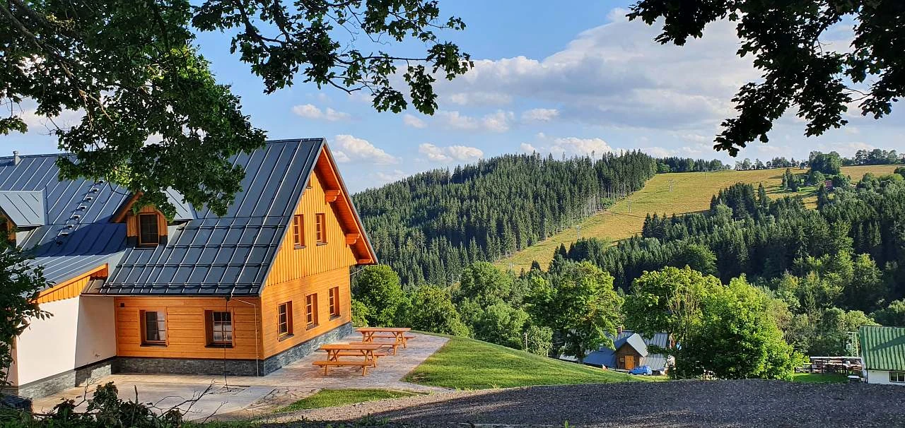 - Popis: Horská chata s výhledem na Krkonoše.