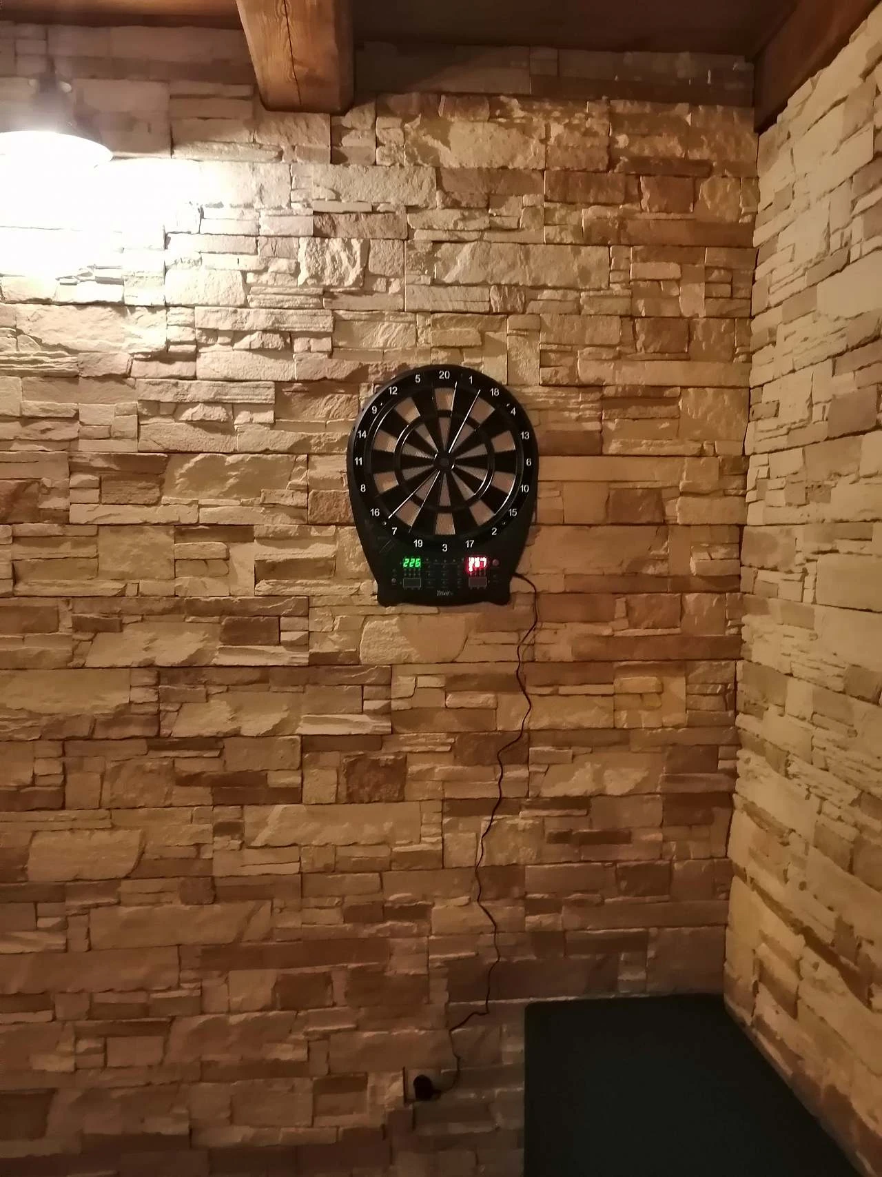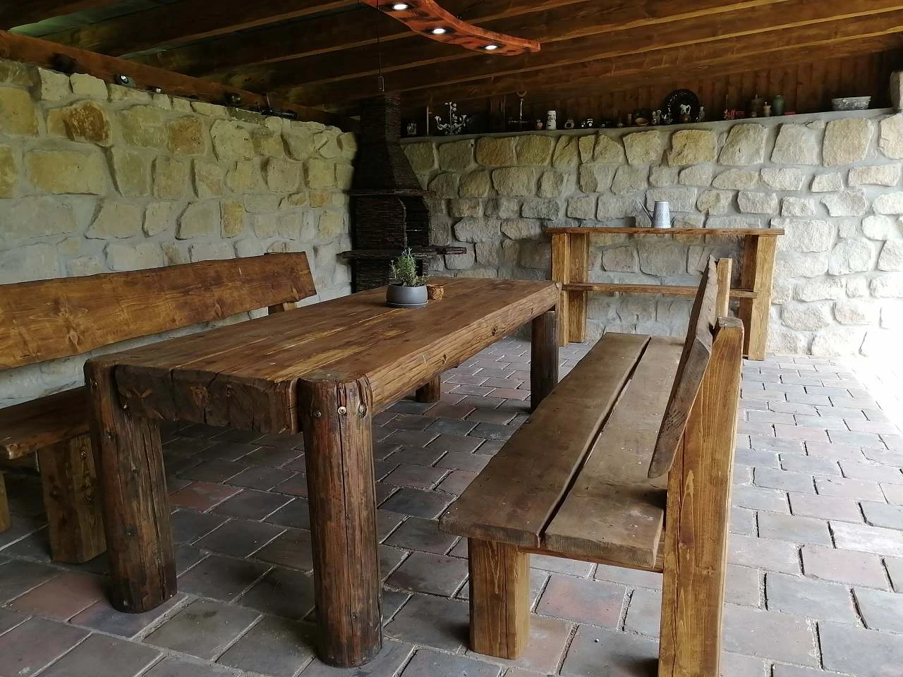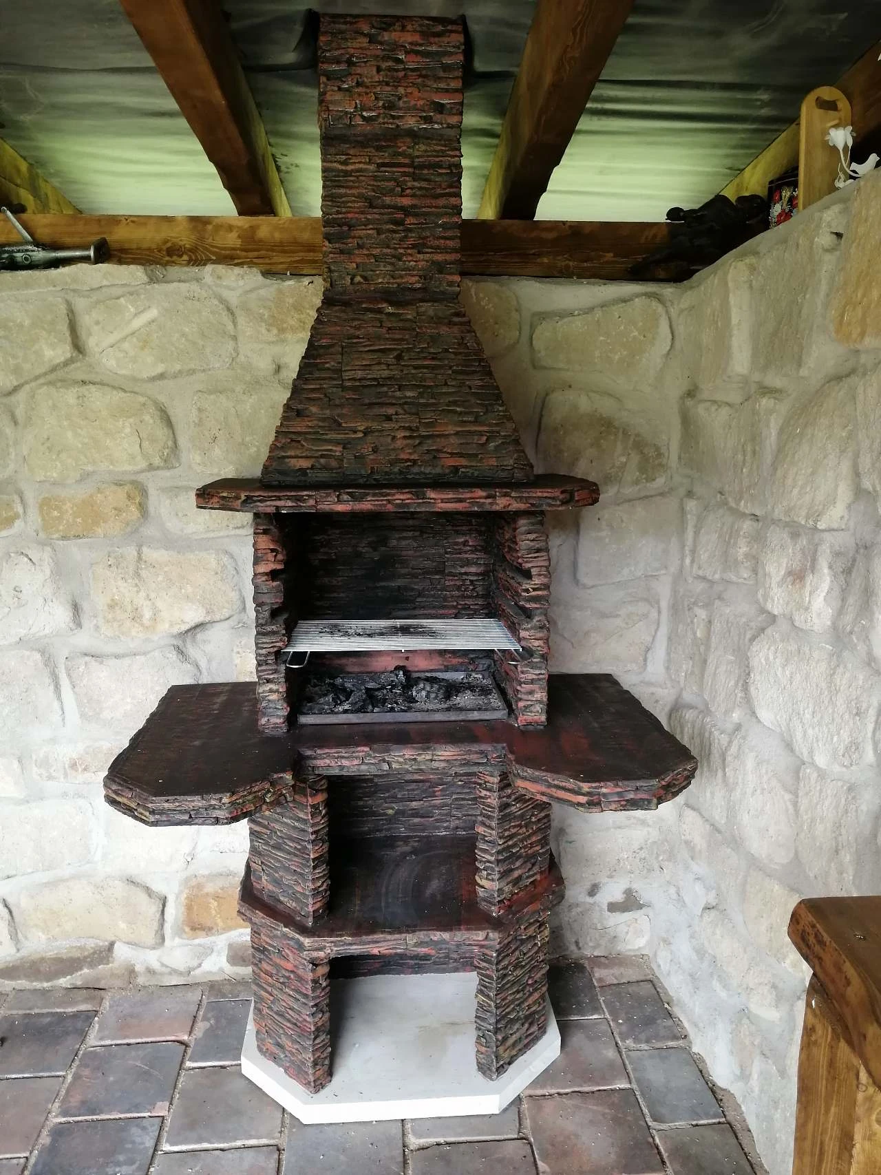 Na zahradě se nachází otevřená "stodola" s grilem na dřevěné uhlí, dřevěným nábytkem k posezení a pohodlným gaučem pro odpolední relaxaci. Dále je k dispozici velké ohniště s posezením, skluzavka, pískoviště a houpačka pro děti.