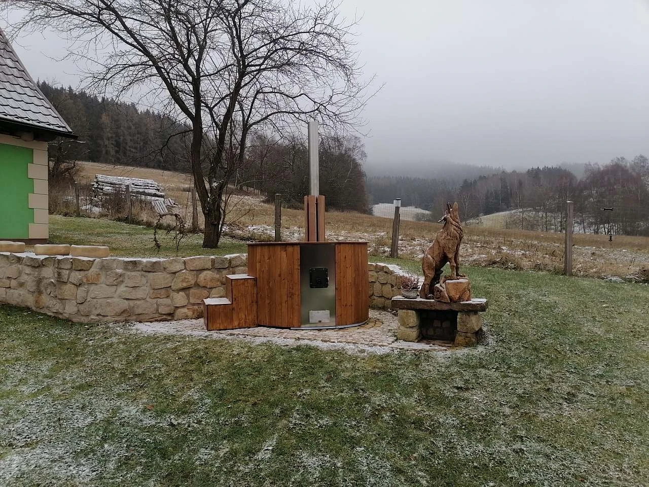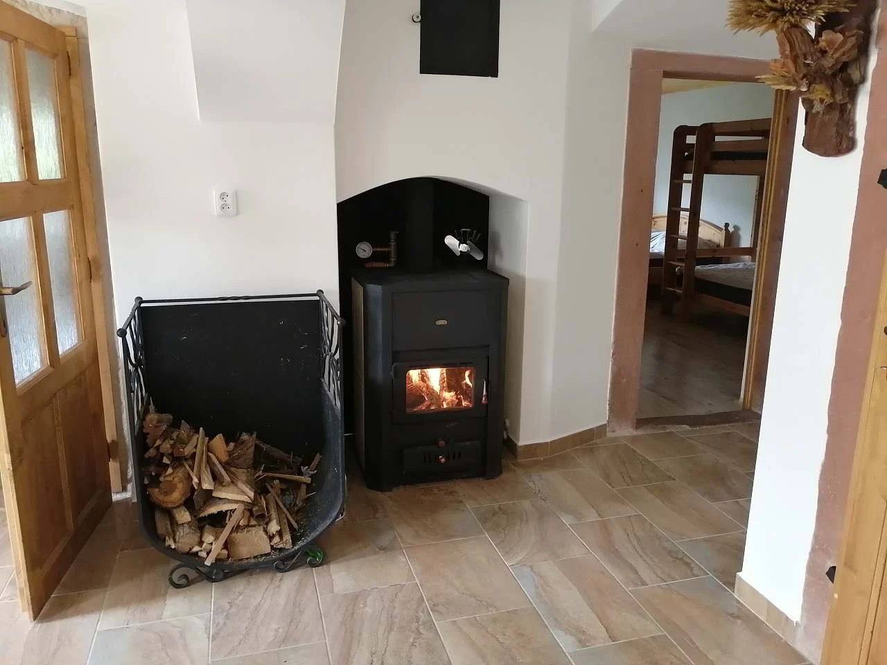 Chalupa je vytápěna krbovými kamny s výměníkem, které zajišťují teplo v celém objektu. Parkování je zajištěno vedle chalupy pro tři auta.
