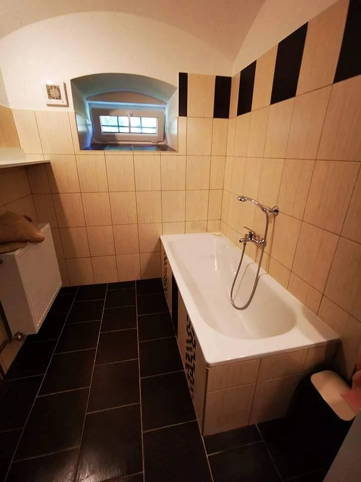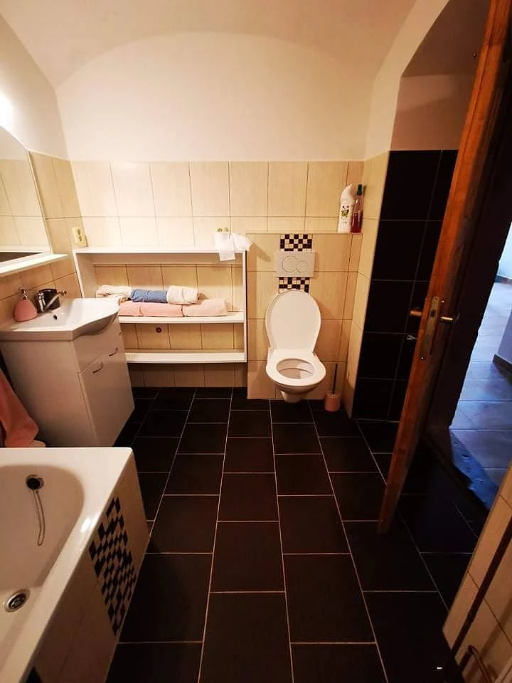 K dispozici je koupelna s vanou a WC a druhé WC v technické místnosti.
