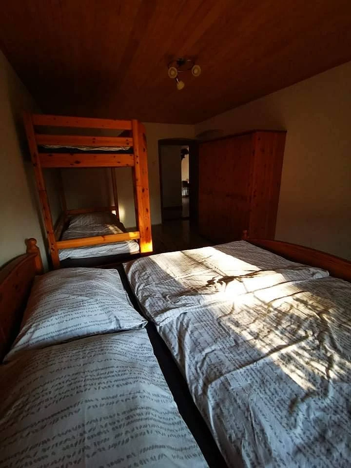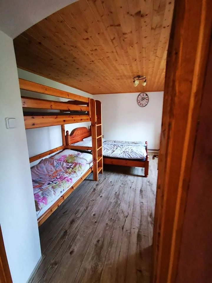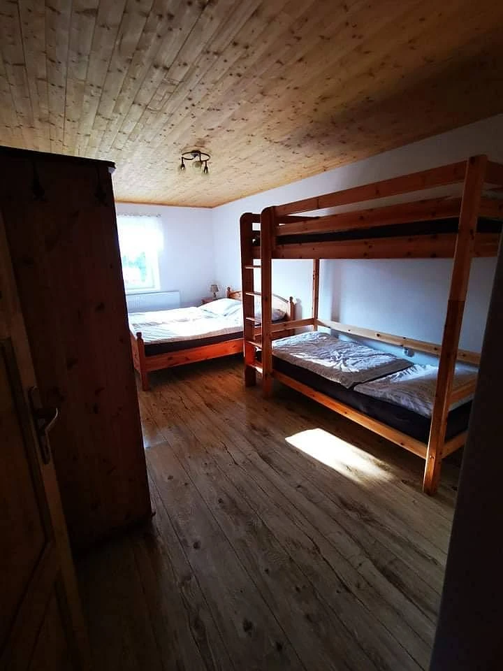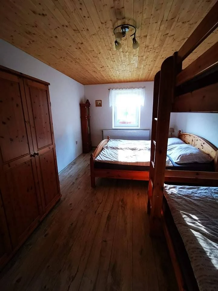 Chalupa nabízí ubytování pro 2 až 8 osob ve 2 ložnicích. V každé ložnici je manželská a patrová postel, šatní skříň a noční stolek.