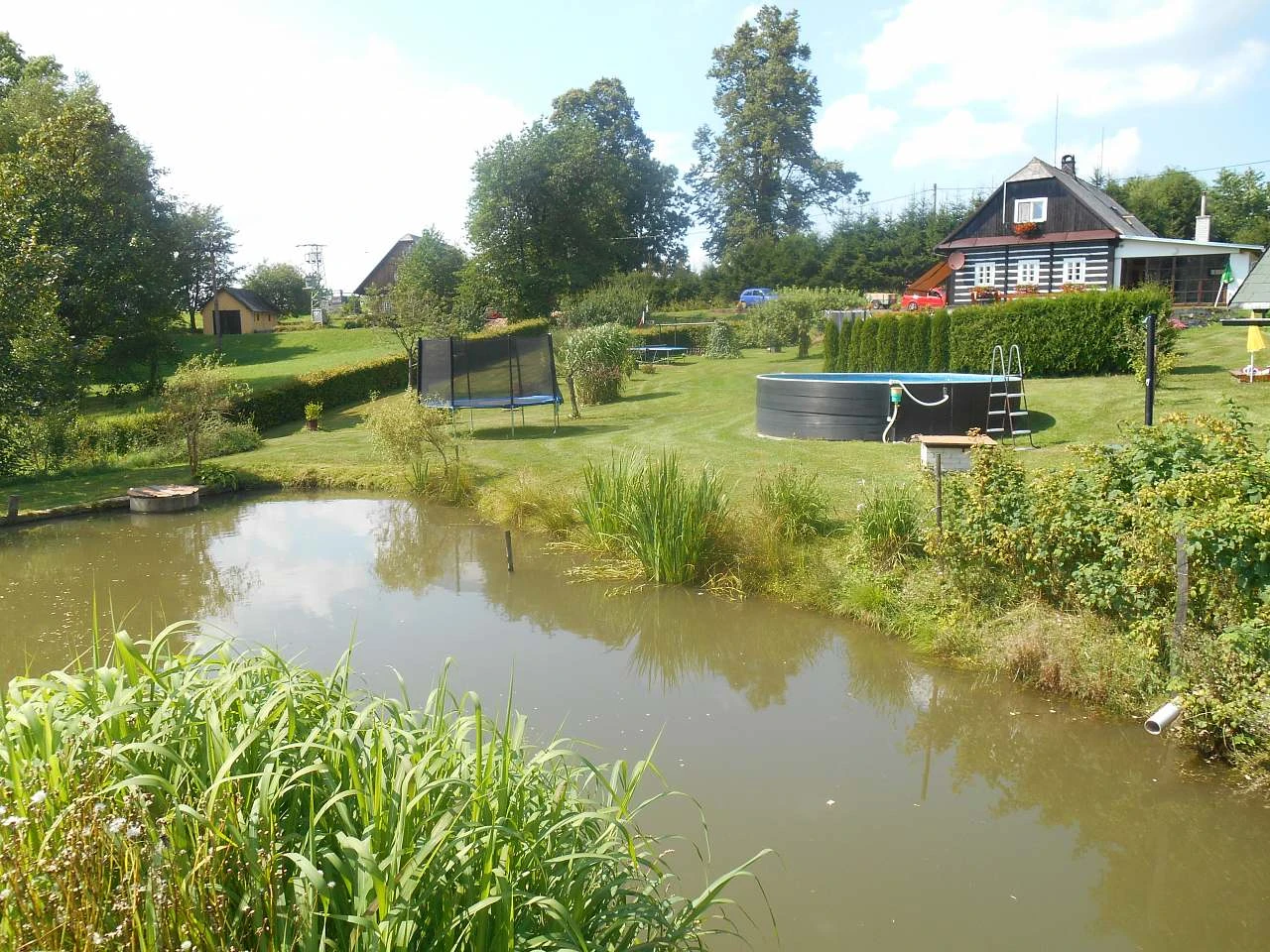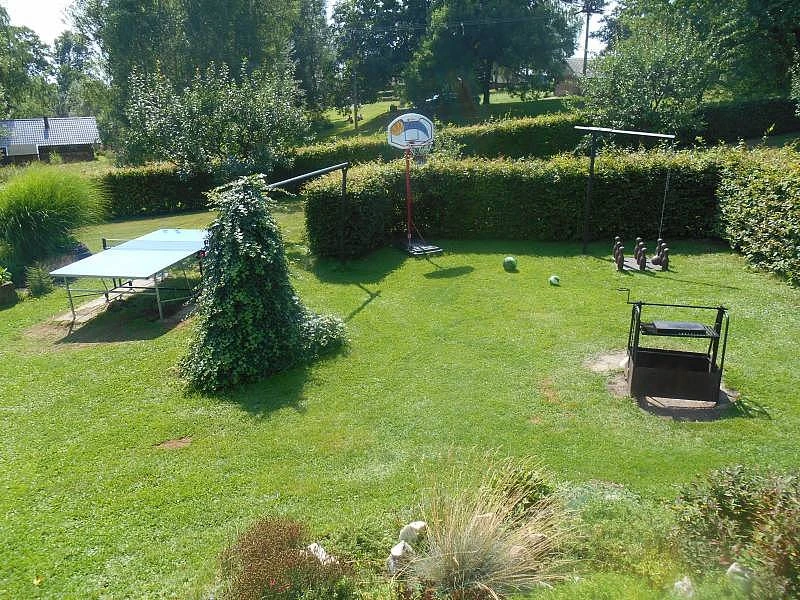Chalupa pohodlně ubytuje až 8 hostů, s možností 1 přistýlky a 2 dětských postýlek zdarma. Na prostorné zahradě najdete dětské hřiště (trampolína, basketbalový koš, ruské kuželky, stolní tenis), a dokonce i soukromý rybník, kde si po dohodě s majitelem můžete vyzkoušet rybolov technikou „chyť a pusť“.