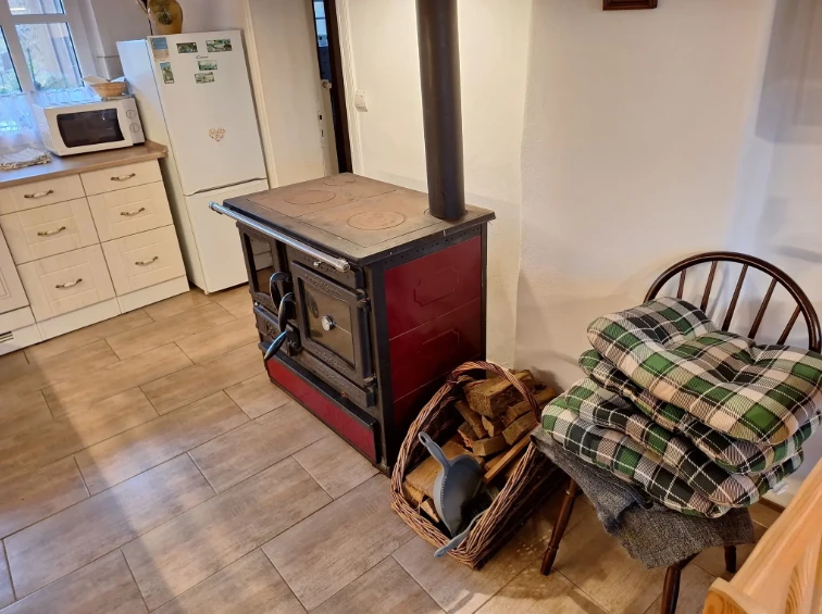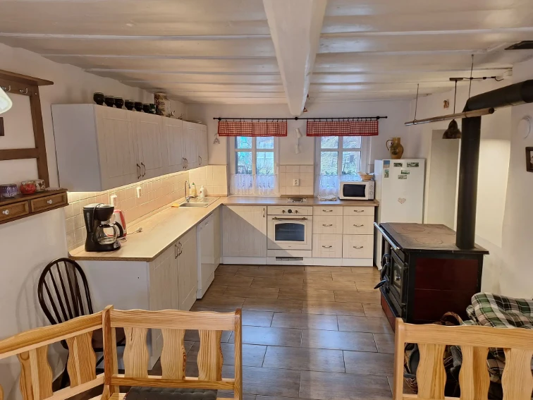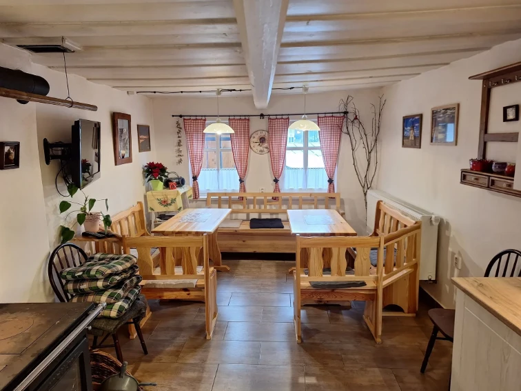 Součástí chalupy je společenská místnost s plně vybavenou kuchyní, dvě koupelny, úložný prostor na lyže a sklep na potraviny. K dispozici je WiFi připojení, televize se satelitem a venkovní posezení s ohništěm. Parkování je zajištěno přímo u objektu pro čtyři vozidla. Děti potěší pískoviště a hračky, pro nejmenší je k dispozici i dětská židle.