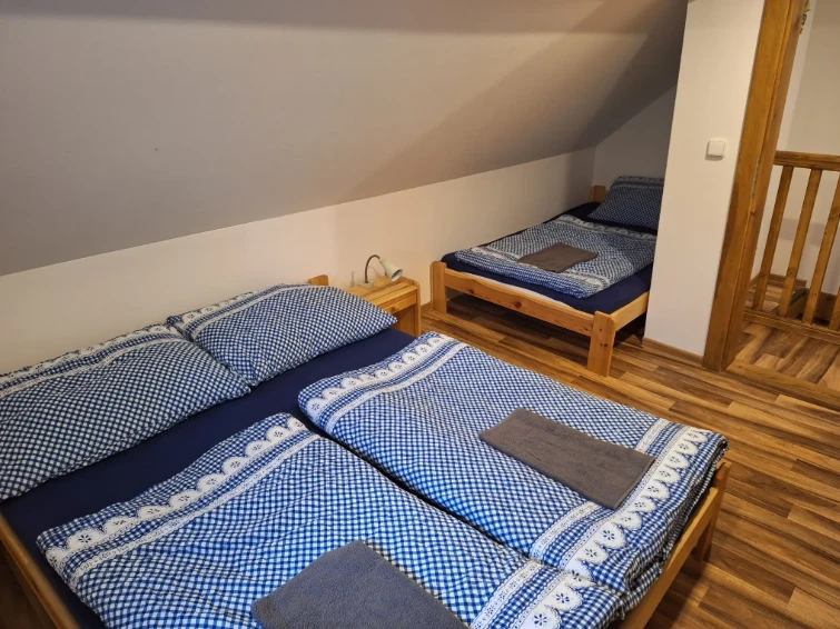 3 pokoje (1x manželská postel + 7x samostatné lůžko)