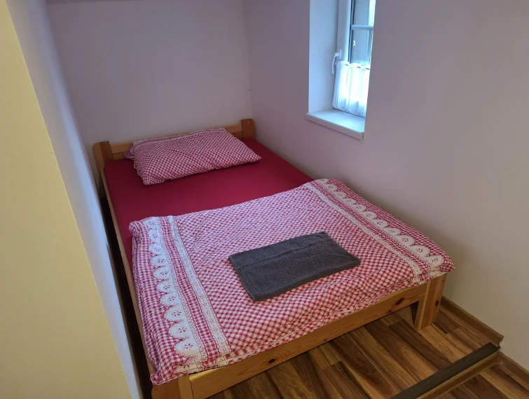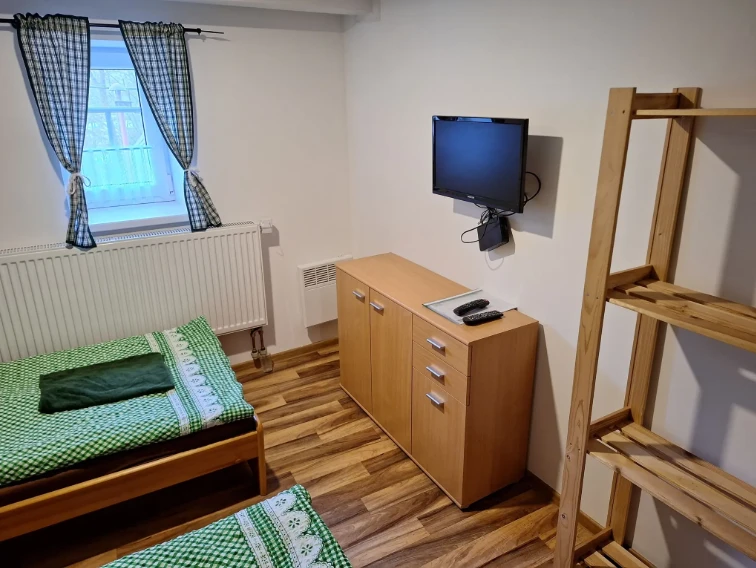 Kapacita: 4 osobyDispozice: 1 ložnice 4× jednolůžková postel Vybavení pokoje: WiFi připojení k internetu Televize Satelitní příjem Ceník ubytování (Červený pokoj): Období Cena za osobu / noc Minimální délka pobytu Poznámka Celoročně (2. 1. – 22. 12.) 400 Kč min. 3 noci, min. 1 osoba Přesná cena dle dohody s majitelem 500 Kč 1 noc, min. 1 osoba Přesná cena dle dohody s majitelem 23. 12. – 26. 12. Nepronajímá se