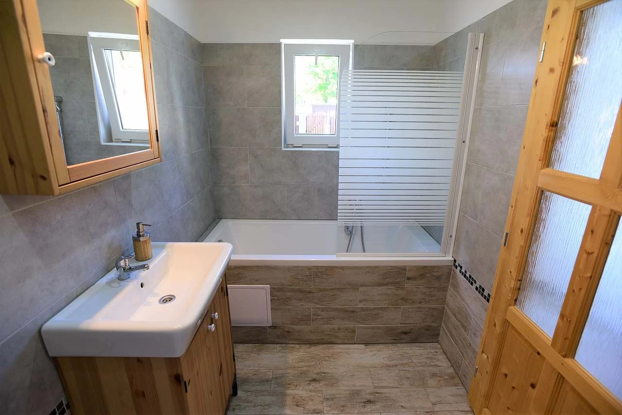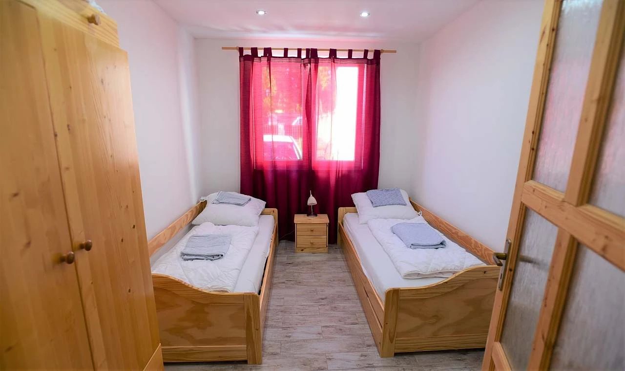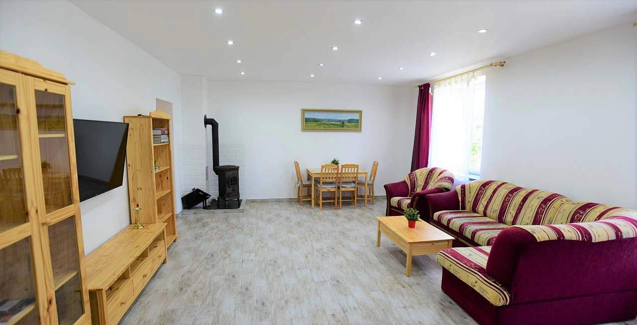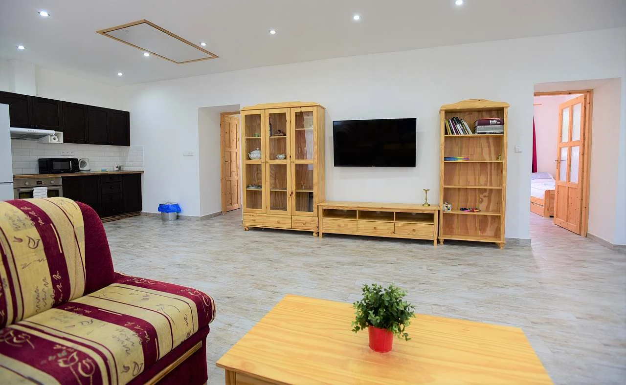 To, co naše ubytování odlišuje, je prostorný obývací pokoj s kuchyňským koutem a pohodlnou rozkládací pohovkou. K dispozici je také smart televize, WIFI, lednice a myčka na nádobí. Dále zde naleznete ložnici s manželskou postelí a druhou ložnici s oddělenými lůžky. Ubytování je také vybaveno samostatným WC a koupelnou s vanou. Celková plocha ubytovacího zařízení je více než 90 metrů čtverečních.