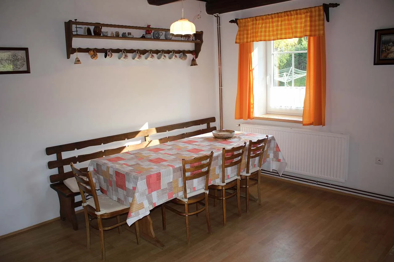 V suterénu domu je k dispozici společenský prostor a posezení pro 10 lidí.