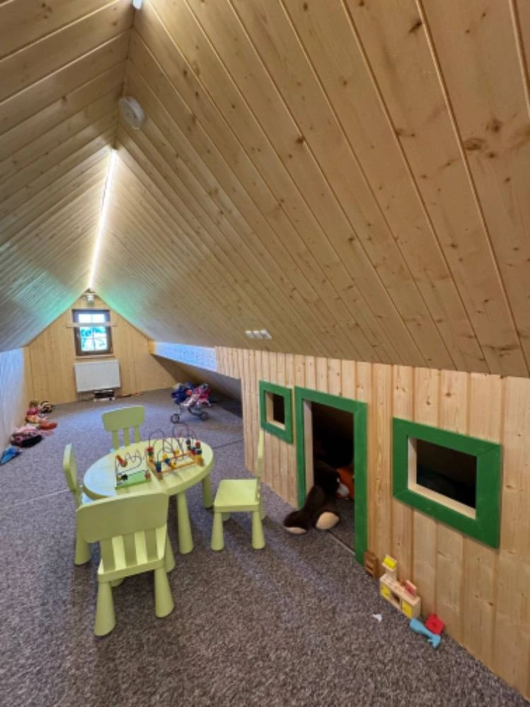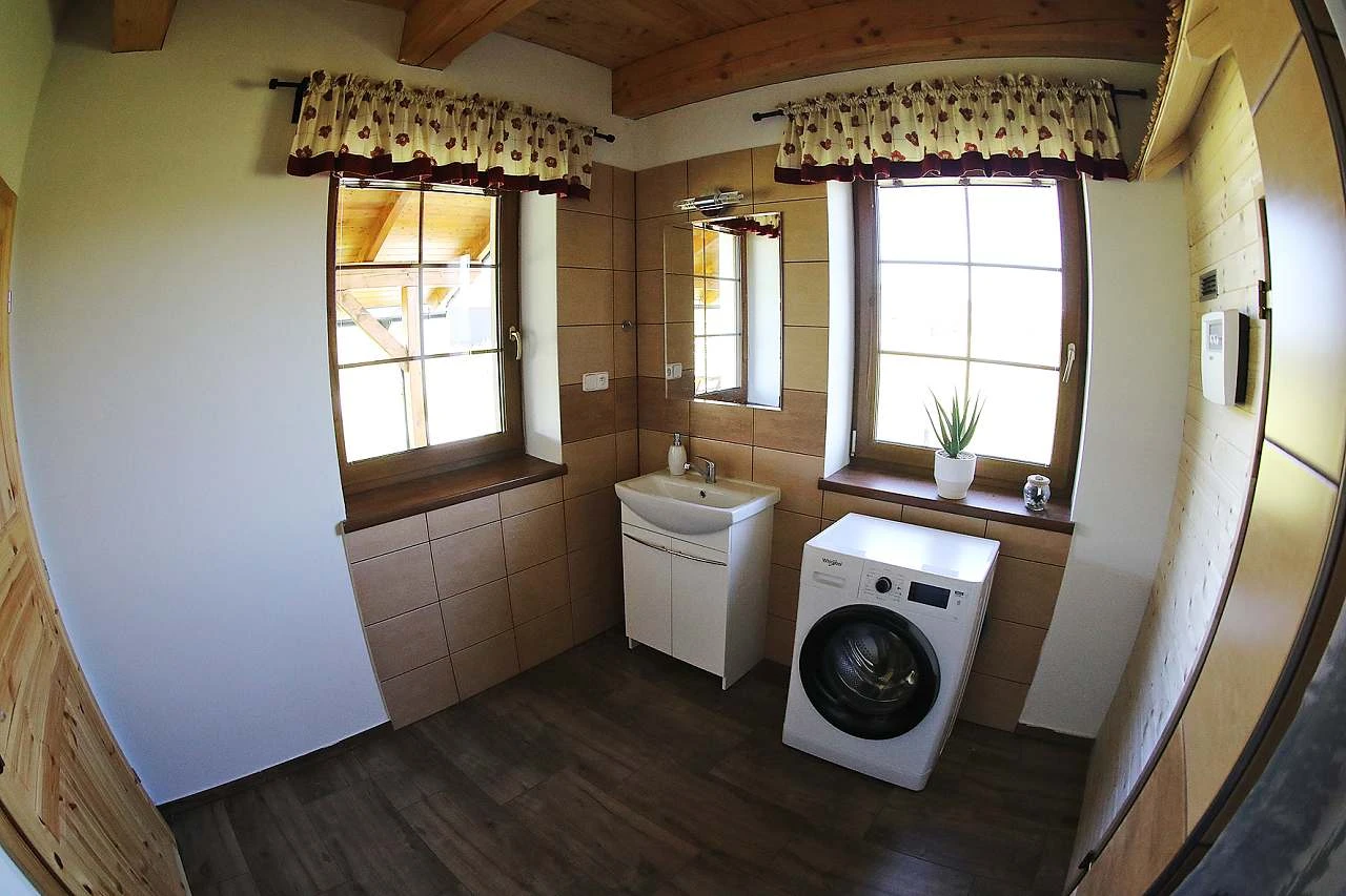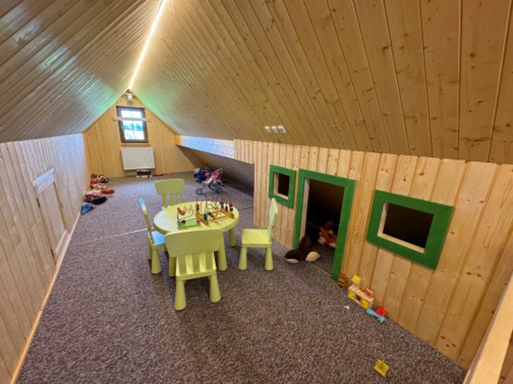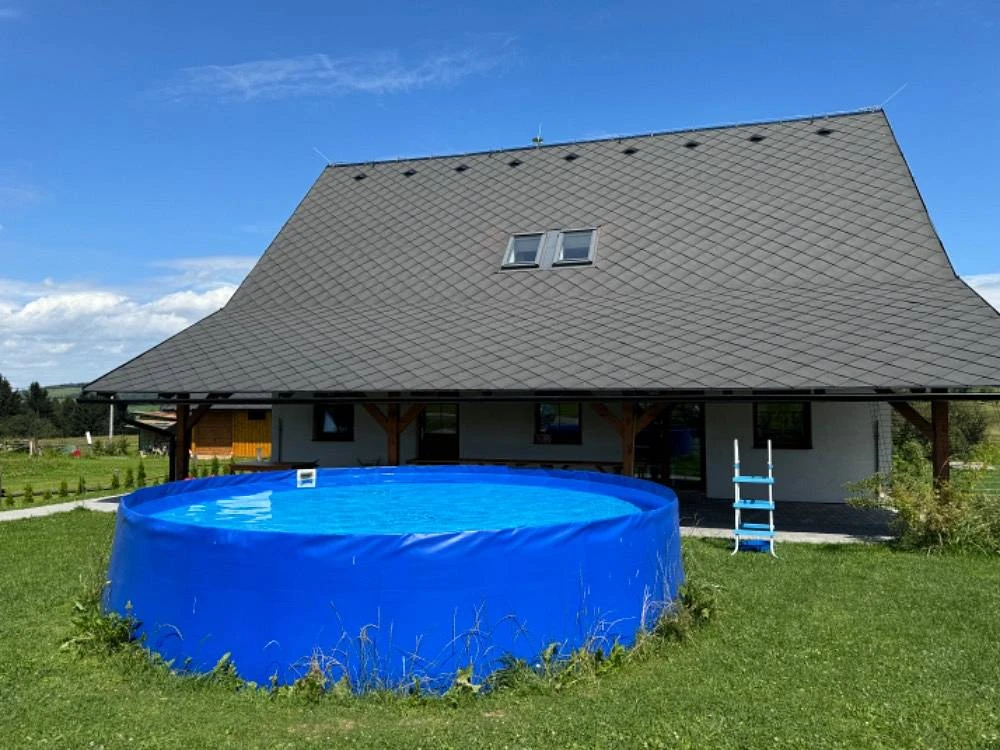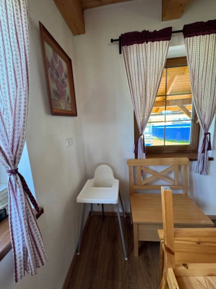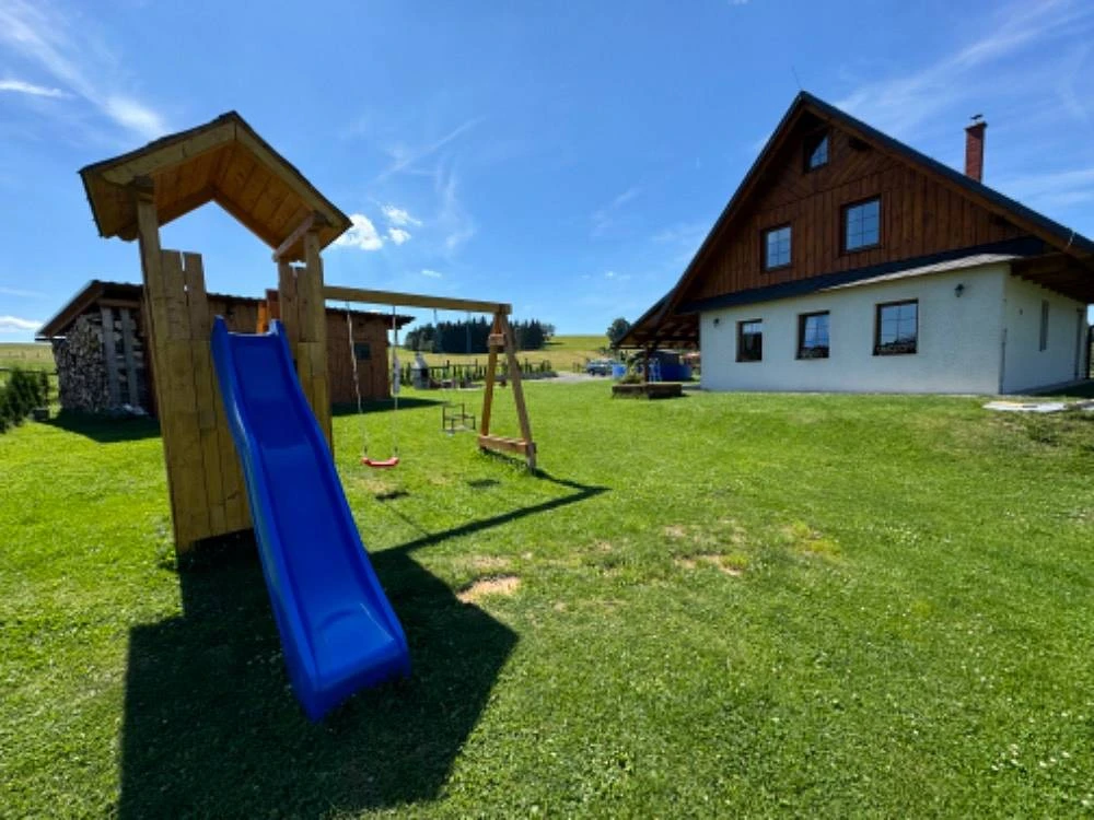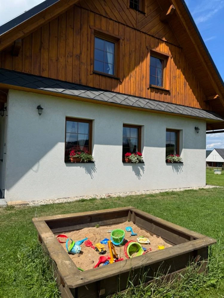 Televize, mikrovlnná trouba, sklokeramická deska, lednice s mrazákem, nerezové hrnce, nádobí, příbory, kávovar, myčka, pračka. V podkroví prostorná herna pro děti. Na zahradě chalupy je pískoviště, houpačky a klouzačka. V letních měsících bazén.