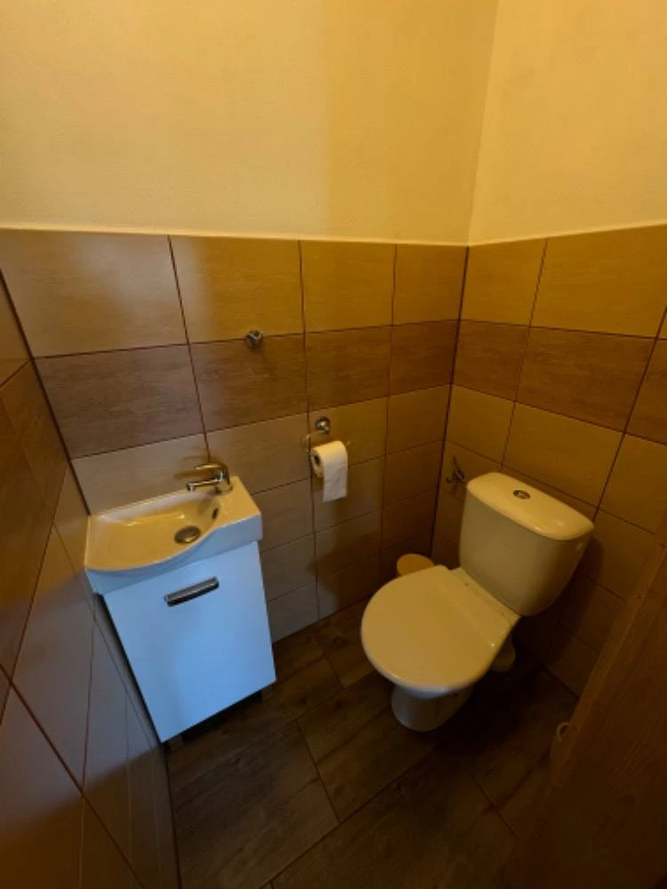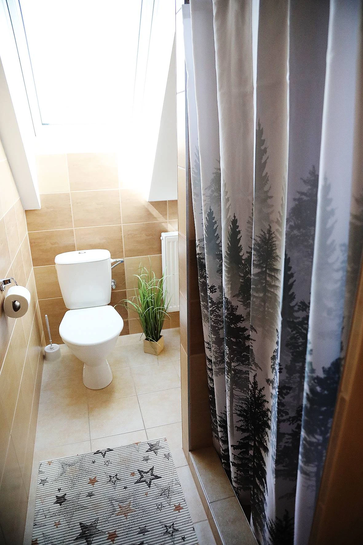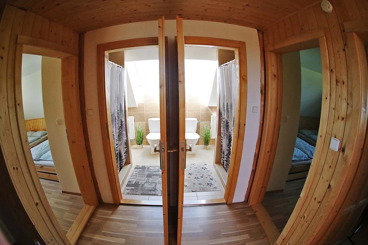 V patře se nachází čtyři ložnice (tři čtyřlůžkové a jedna pětilůžková) s manželskými i samostatnými postelemi. K dispozici jsou tři koupelny, samostatná toaleta a pračka.