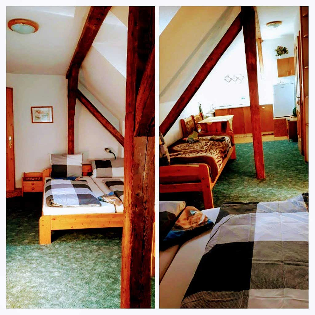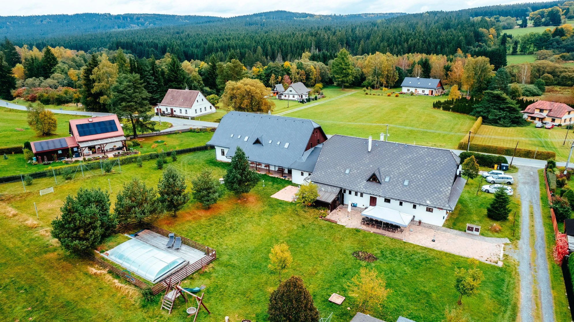 Máme k dispozici dvě budovy, které můžete pronajmout buď obě najednou, nebo každou zvlášť. Chalupa I poskytuje 18 lůžek včetně společenské místnosti a kuchyně. Chalupa II disponuje 20 lůžky včetně společenské místnosti a kuchyňského koutu. Každá budova má samostatný vchod, ale je také možné je propojit. Naše rozlehlá zahrada směřuje k lese a nabízí venkovní bazén, dětské a fotbalové hřiště, venkovní gril a ohniště.