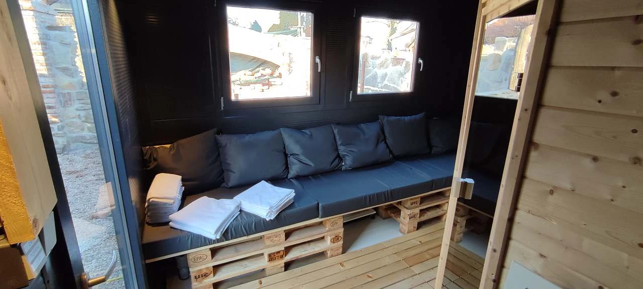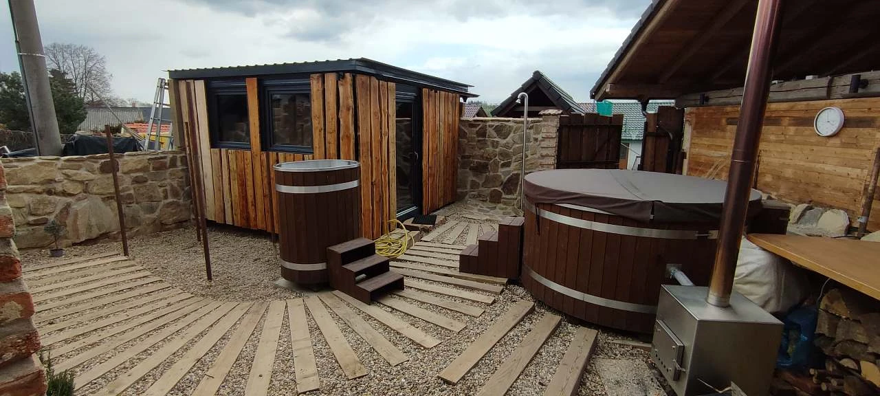 Wellness zóna - ke každému pobytu lze přiobjednat venkovní wellness s finskou saunou a koupacím, vířivým sudem a odpočinkovou zónou