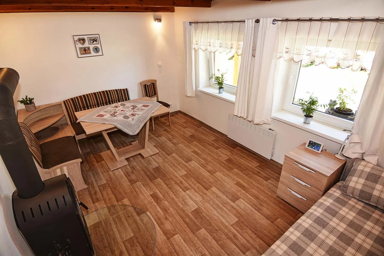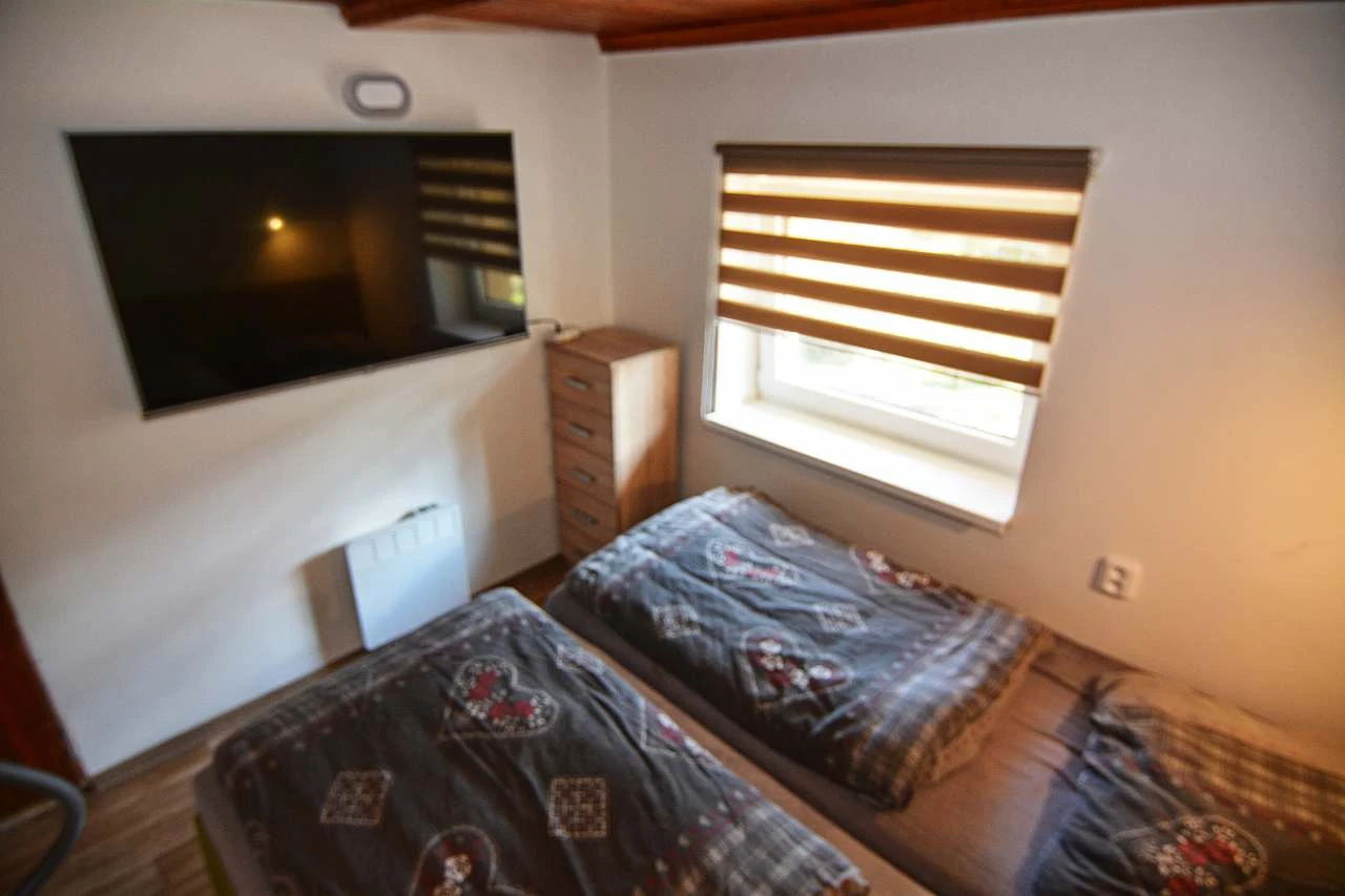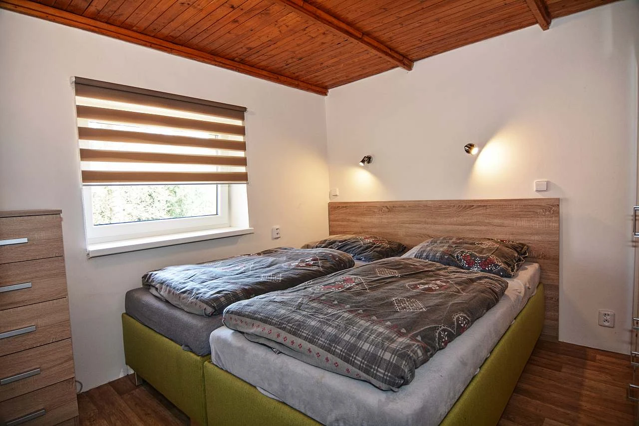 Chata k pronájmu poskytuje ubytování pro 2 až 4 osoby ve 2 ložnicích.