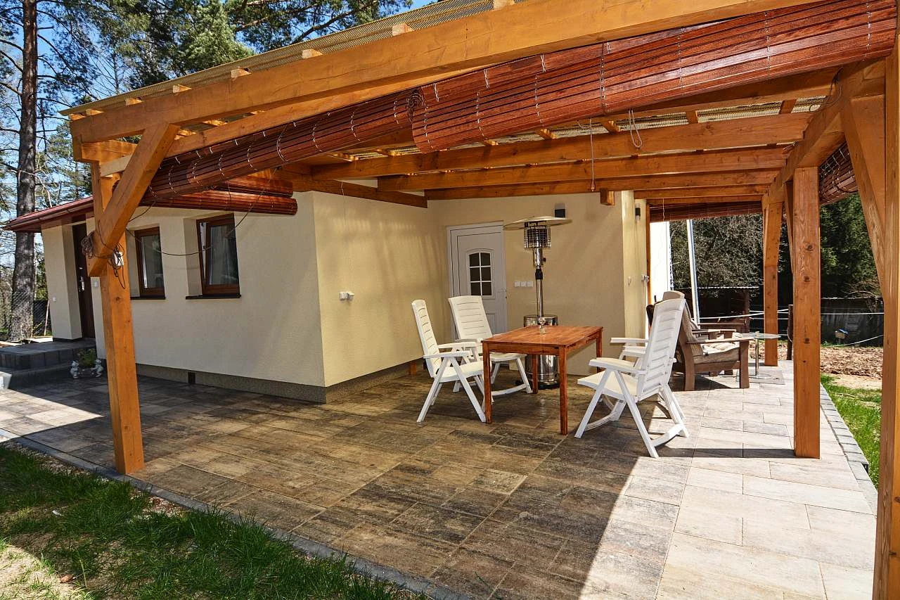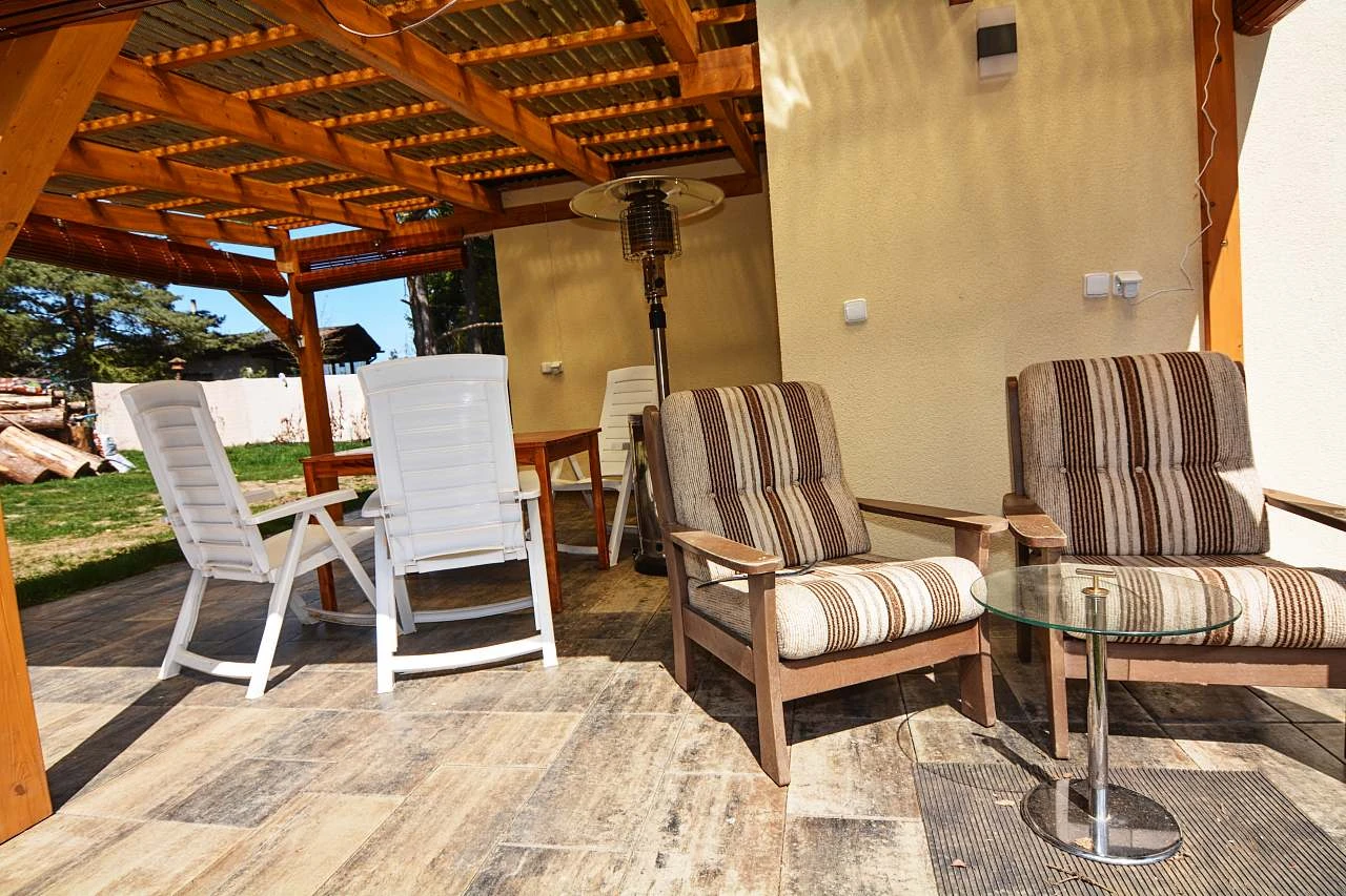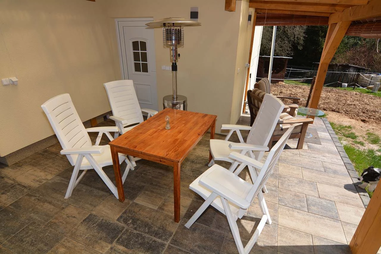 Chata je dobře vybavená, zahrnuje obývací pokoj s dvoulůžkem a možností přístýlky, plně zařízenou kuchyň, koupelnu se sprchou a venkovní terasou. Mezi zařízení patří indukční varná deska, elektrický sporák, myčka a Wi-Fi připojení. Vytápění je zajištěno krbovými kamny a elektrickým topením. Hosté mohou parkovat přímo u chaty, což zajišťuje pohodlný přístup.