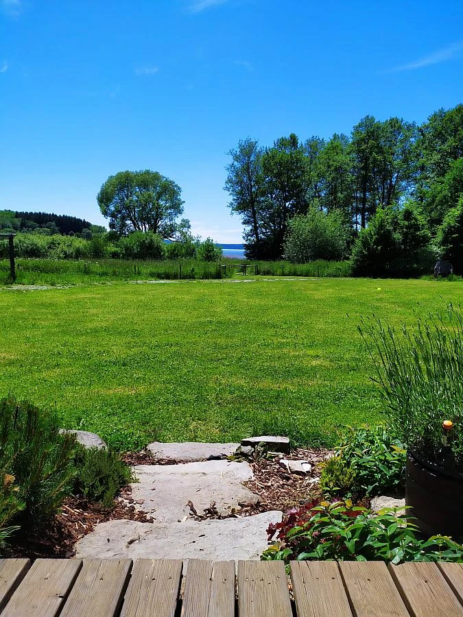 Z obývací místnosti je přístup na terasu s posezením. Na pozemku je venkovní krb, gril, ohniště a hřiště na plážový volejbal. Hosté mohou využít možnosti rybolovu na přehradě. Parkování pro dvě auta je zajištěno přímo u objektu. Lokalita je ideální pro letní i zimní aktivity, včetně turistiky, cykloturistiky, přírodního koupání, lyžování nebo návštěvy okolních atrakcí, jako je Český Krumlov, stezka v oblacích nebo lyžařské areály Kramolín a Hochficht.