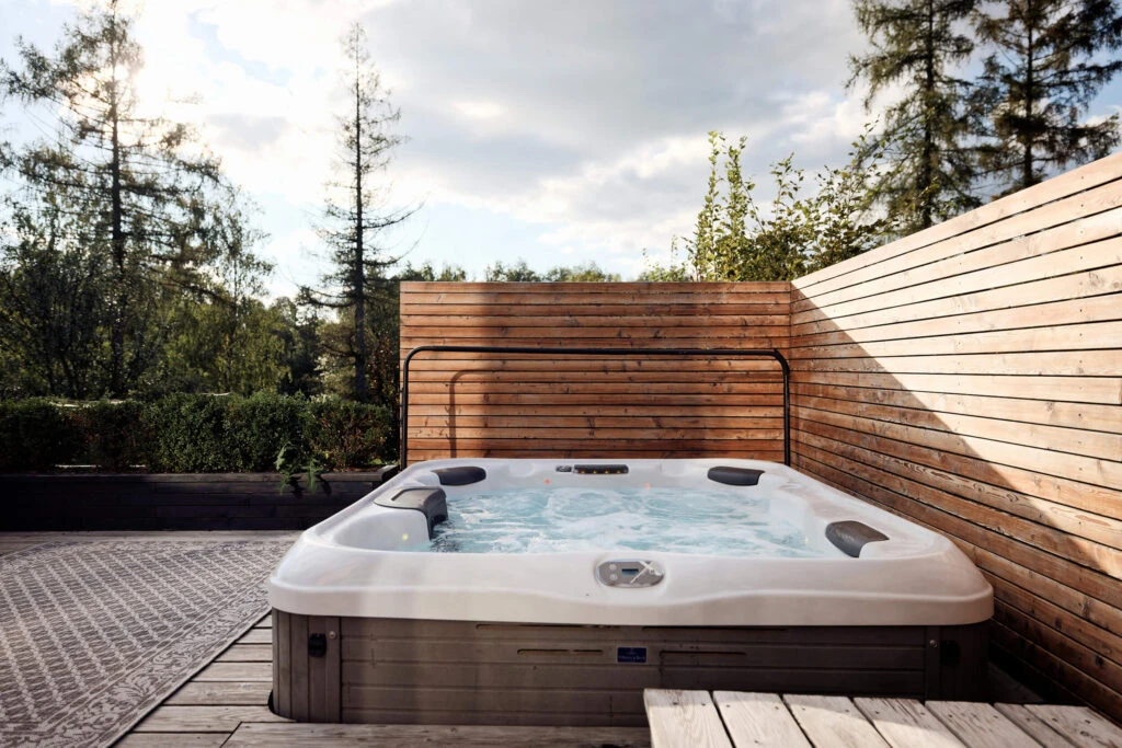 Venkovní vířivka pro 6 osob, terasa s luxusním posezením a grilem