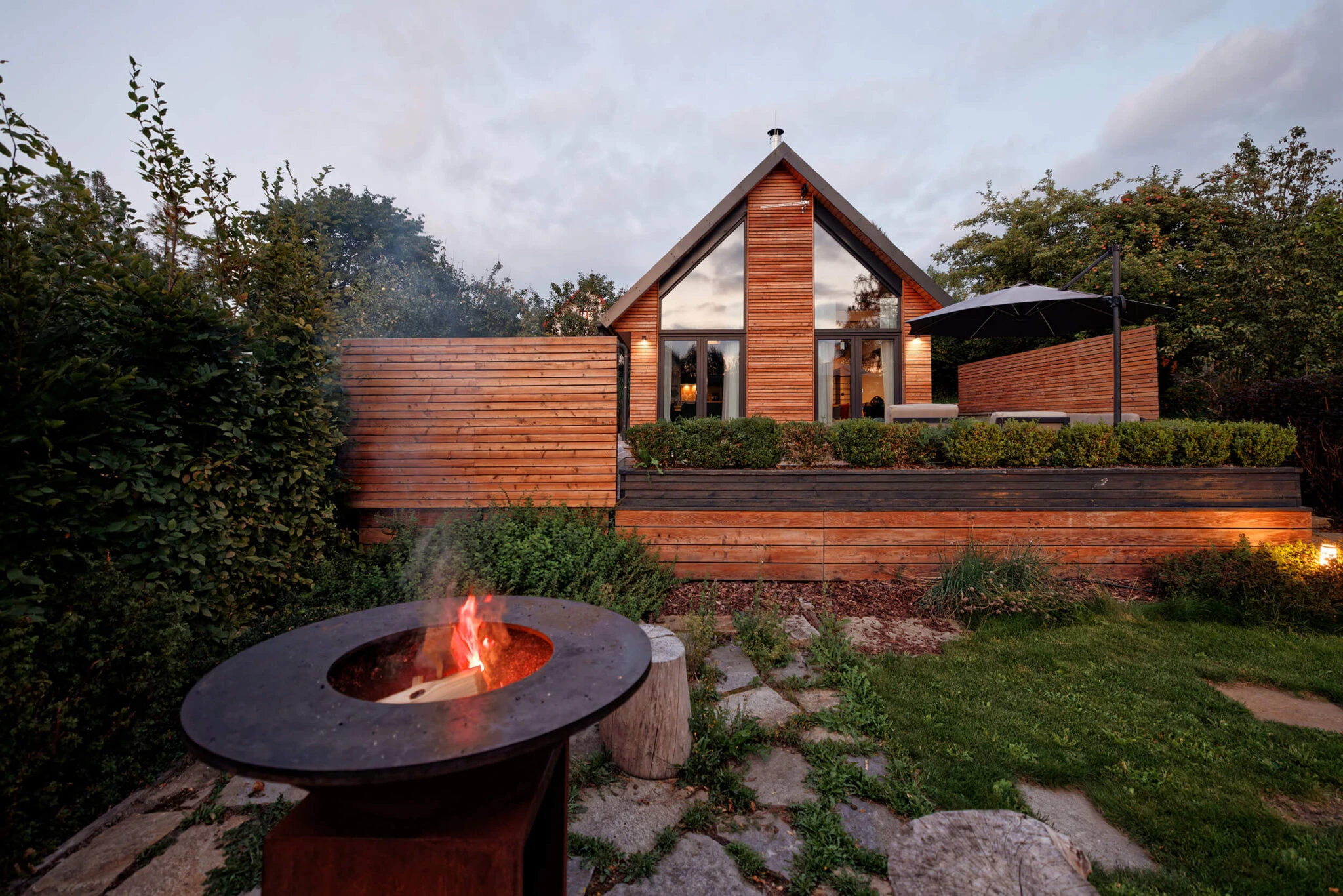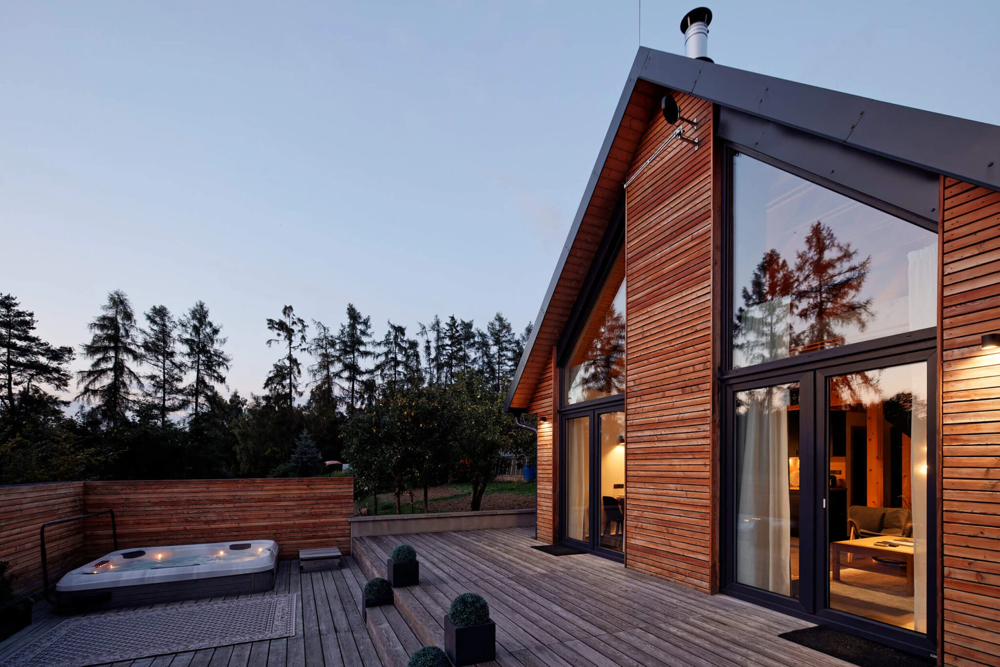 Chata JESTŘÁB v Hlinsku v Čechách nabízí komfortní ubytování s vířivkou, krbem a zahradou navrženou architektem. Ideální pro rodiny, páry i menší skupiny hledající odpočinek i aktivní vyžití v přírodě.