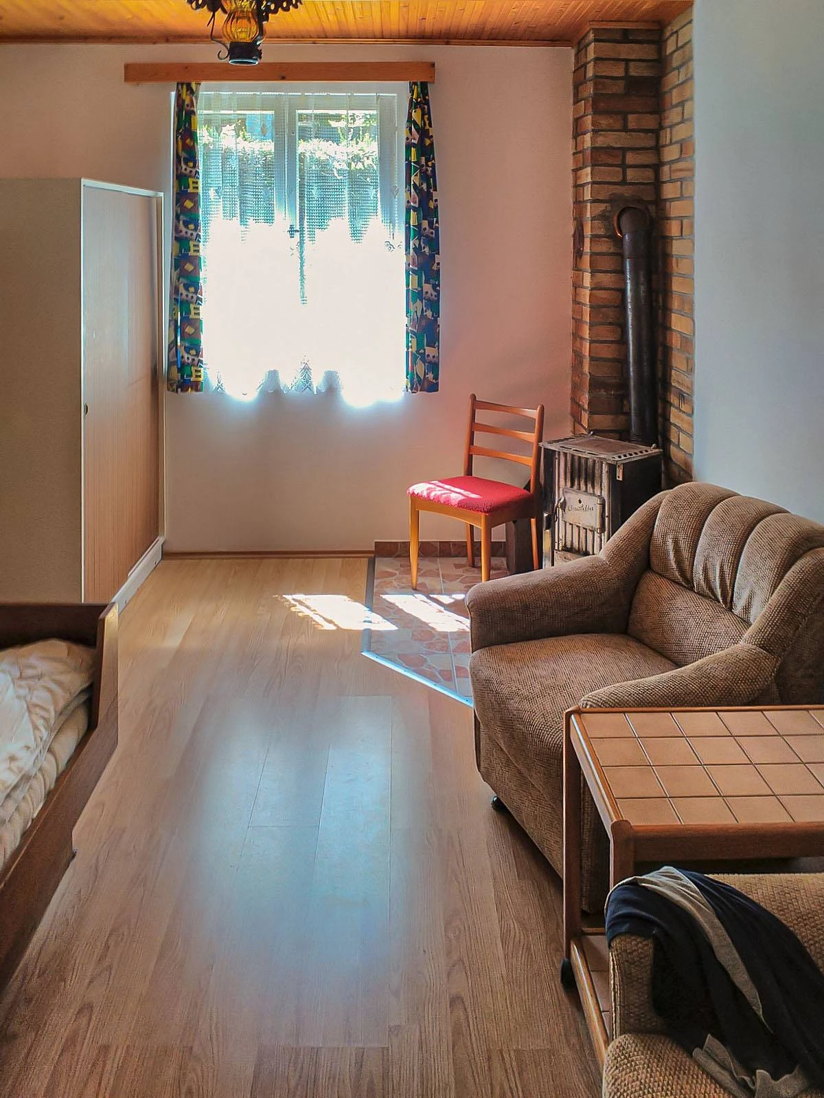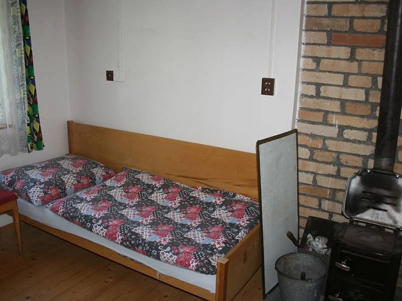Ložnice: 2x2 lůžko (palandy), kamna na uhlí/brikety.